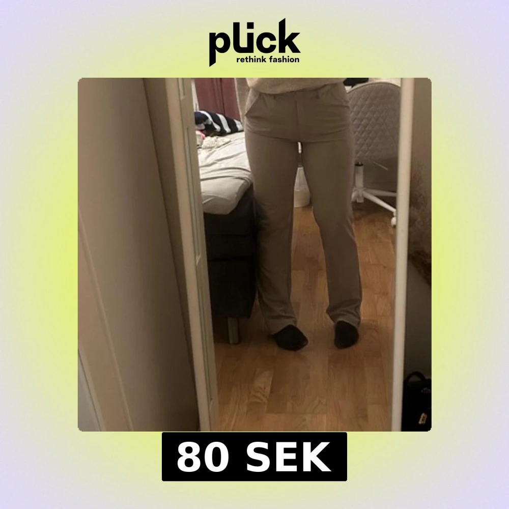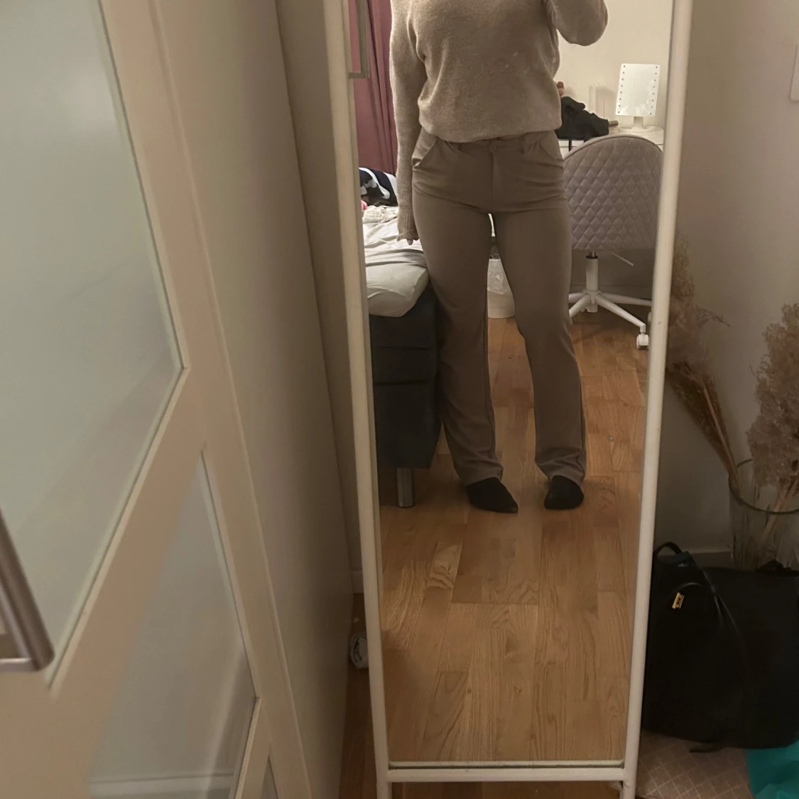Snygga beige byxor med normal passform och hög midja. Byxorna har en klassisk design och är tillverkade i ett bekvämt material. De är kostym byxor passar även personer med storlek S då dem är stora i storleken
