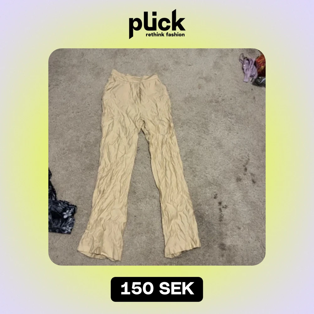 Säljer ett par beige byxor från H&M i storlek XS. De är högmidjade och har en rak passform. Byxorna är gjorda i ett lätt och bekvämt material, perfekt för både vardag och fest. De har en diskret dragkedja och hyska för stängning framtill.