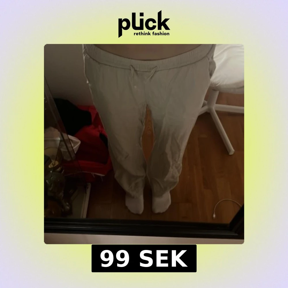 Säljer ett par bekväma beige byxor från Lindex. Byxorna har en elastisk midja med snörning för justerbar passform. Perfekta för en avslappnad stil.
