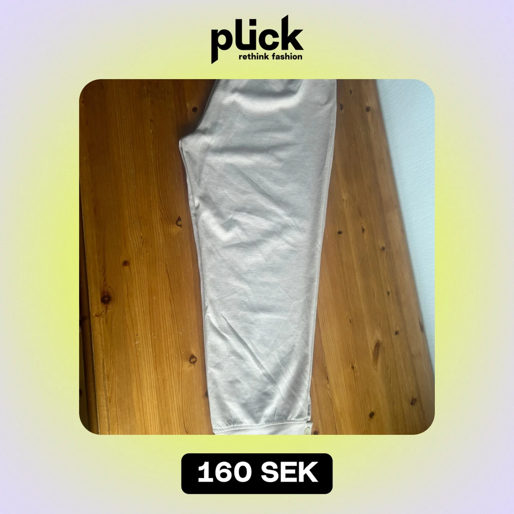 Säljer ett par bekväma beige byxor från Shein i storlek 2XL. Byxorna har en mjuk och stretchig känsla, perfekt för en avslappnad stil. De har knappar vid bensluten som en snygg detalj. Passar perfekt för en chill dag hemma eller en casual utflykt.