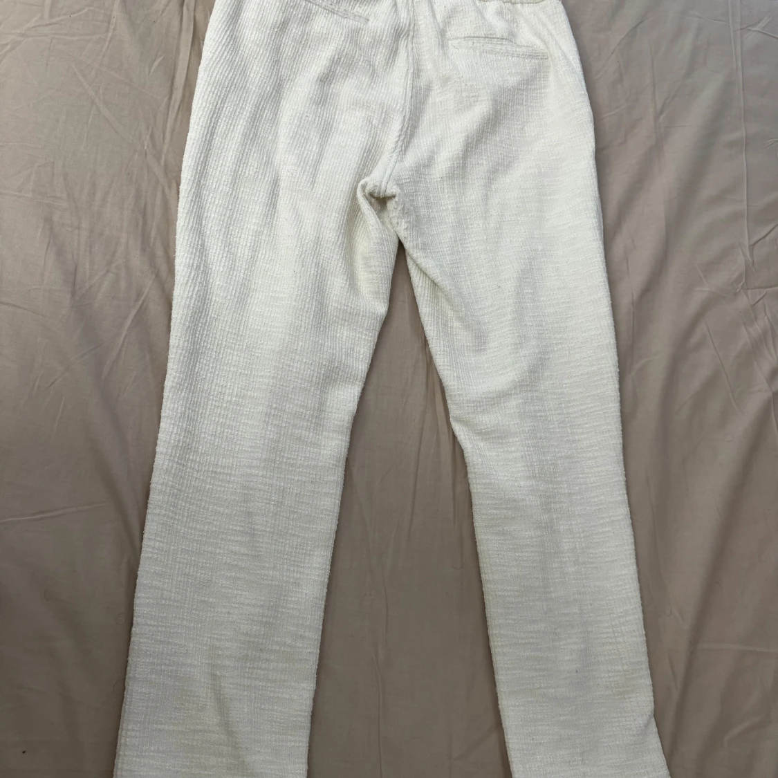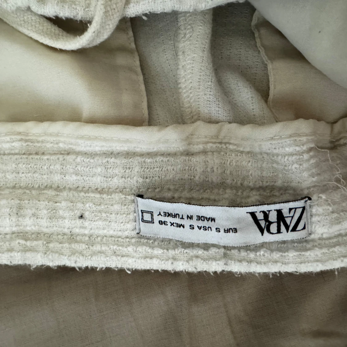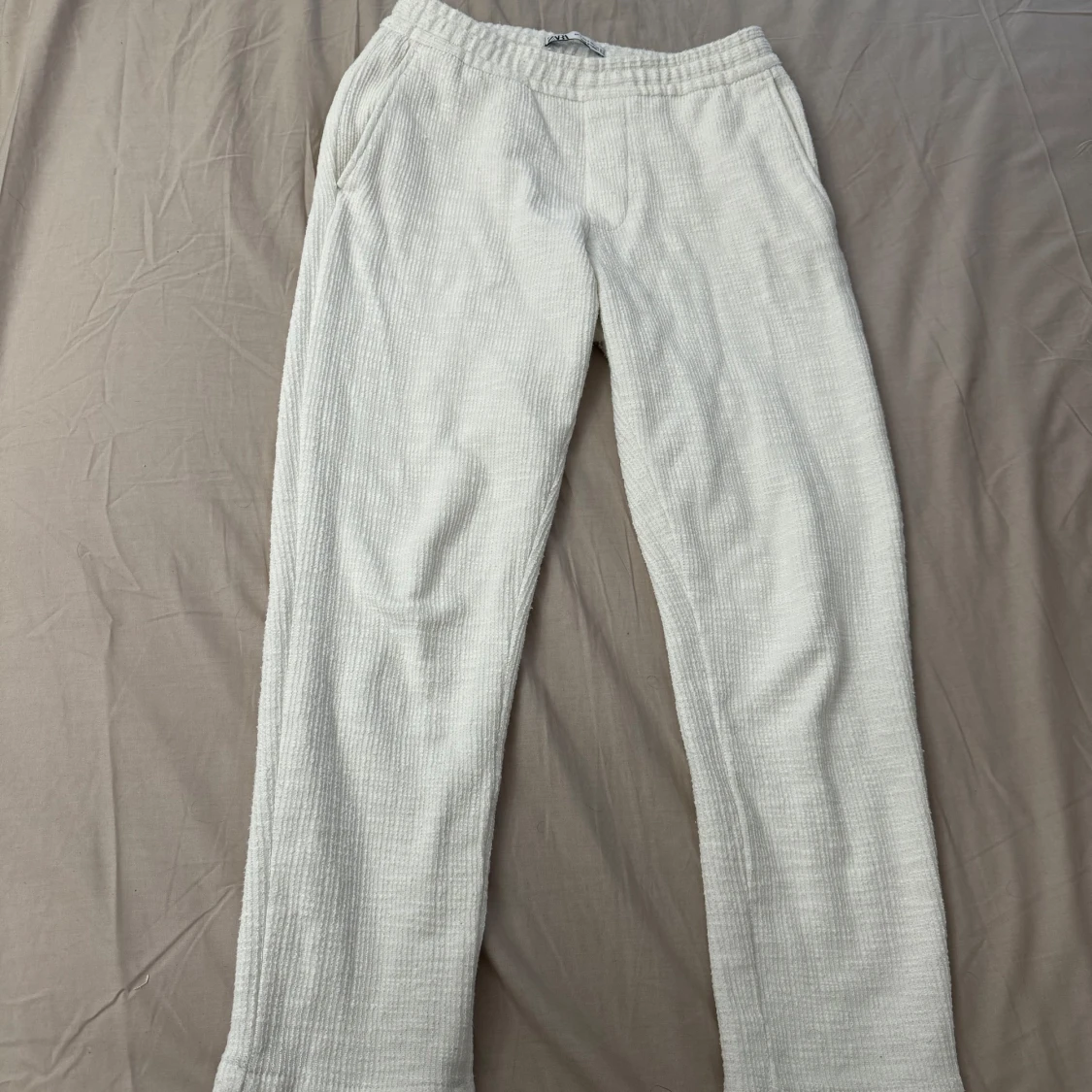 - Skick: bra skick. Använda sparsamt - Storlek S - ord. Pris: 399 - perfekta finbyxor för alla tillfällen Säljer ett par bekväma vita byxor från Zara med snörning i midjan. Byxorna har en avslappnad passform och är perfekta för en bekväm stil. De har elastiska muddar vid bensluten för en modern look. Inga märken. Inget slitage. Säljes pga att de inte längre passar. Din stil: spara inlägget så du inte missar denna kappa Inte din stil: Kolla min profil. Du kommer hitta något för alla kön och åld