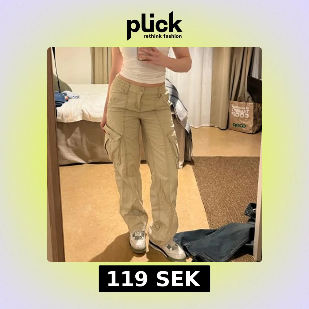 Snygga beige cargobyxor. Rak passform och resår i midjan! Mid waist.