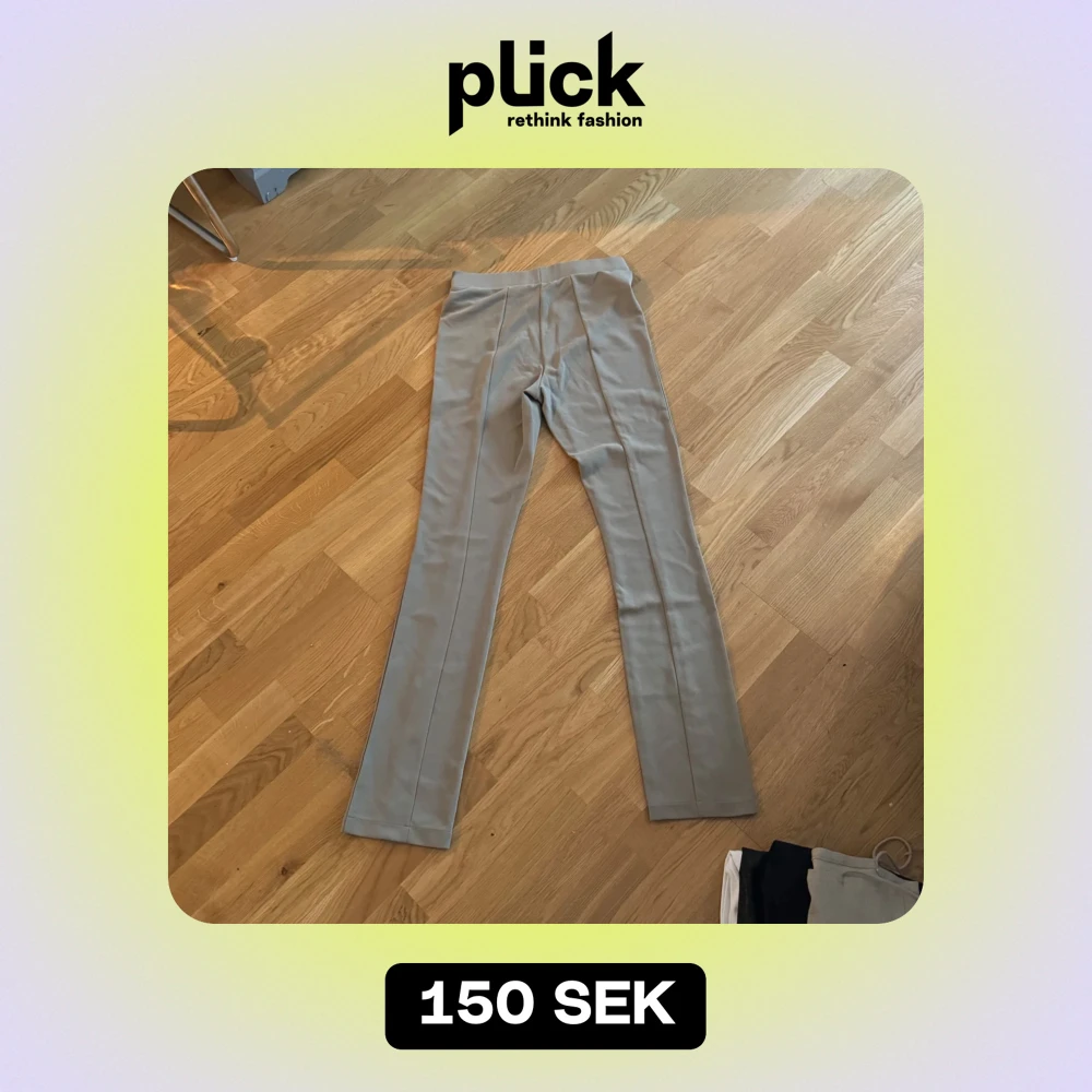 Snygga beige byxor i ett mjukt material. De har en stilren design med slits vid bensluten som ger en modern touch. Perfekta för både vardag och fest! 🕺