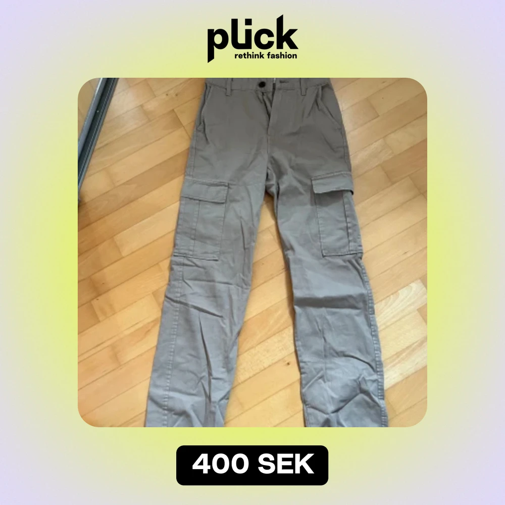 Säljer ett par snygga beige cargobyxor med flera praktiska fickor. Perfekta för en avslappnad och cool stil. Byxorna har en normal passform och är gjorda i ett slitstarkt material.