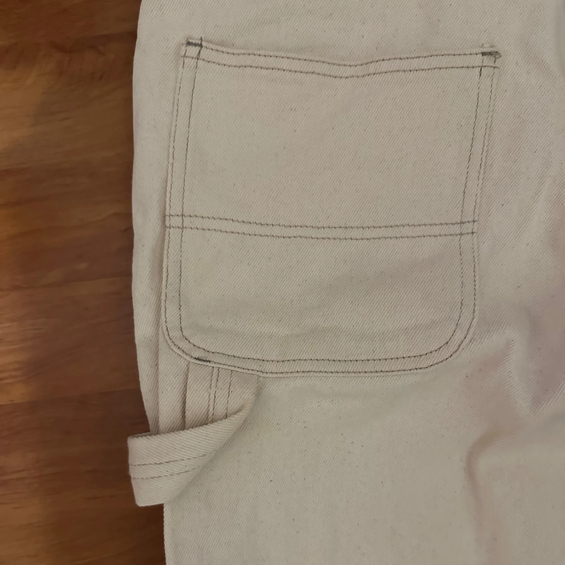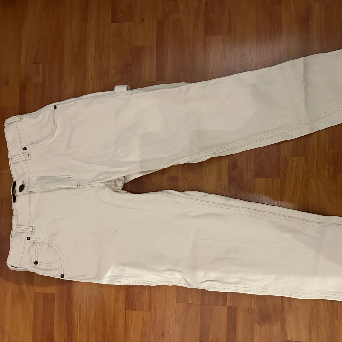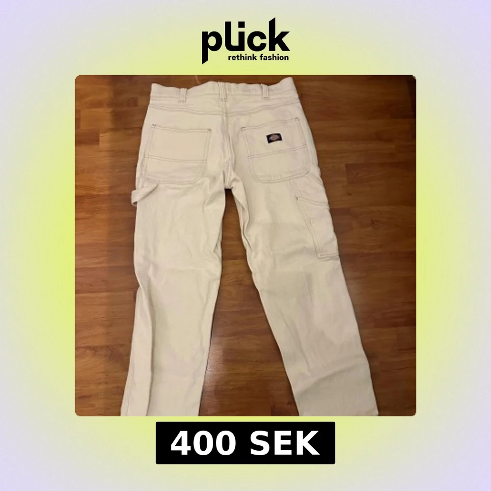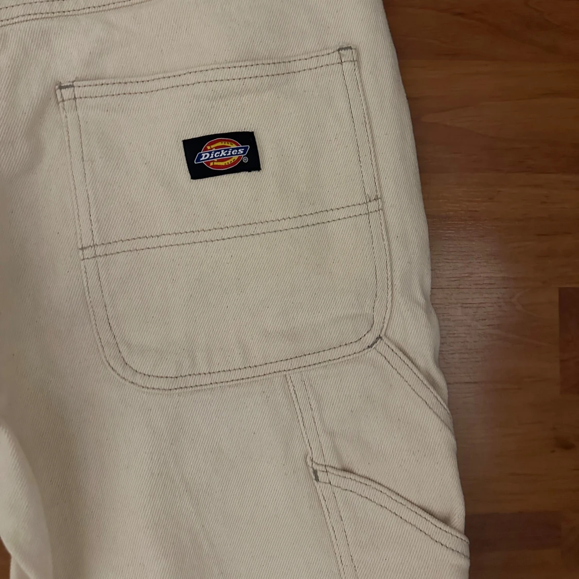 Säljer ett par beige cargopants från Dickies med flera praktiska fickor och en avslappnad passform. Använt en gång. Storlek: W31/L32