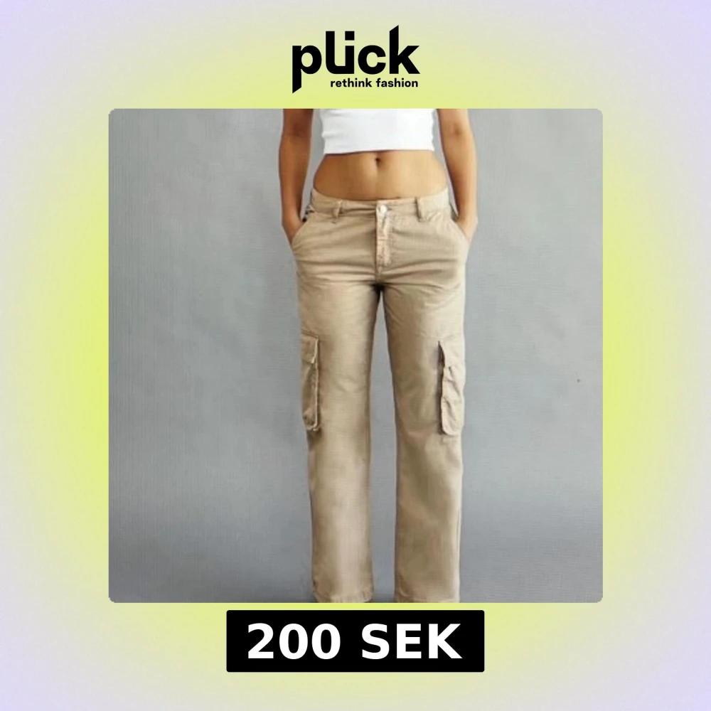 Snygga beige cargopants med raka ben och stora fickor på sidorna. Byxorna har normal midja och klassisk knappstängning framtill. Perfekta för en chill och avslappnad stil, passar till crop tops och sneakers.