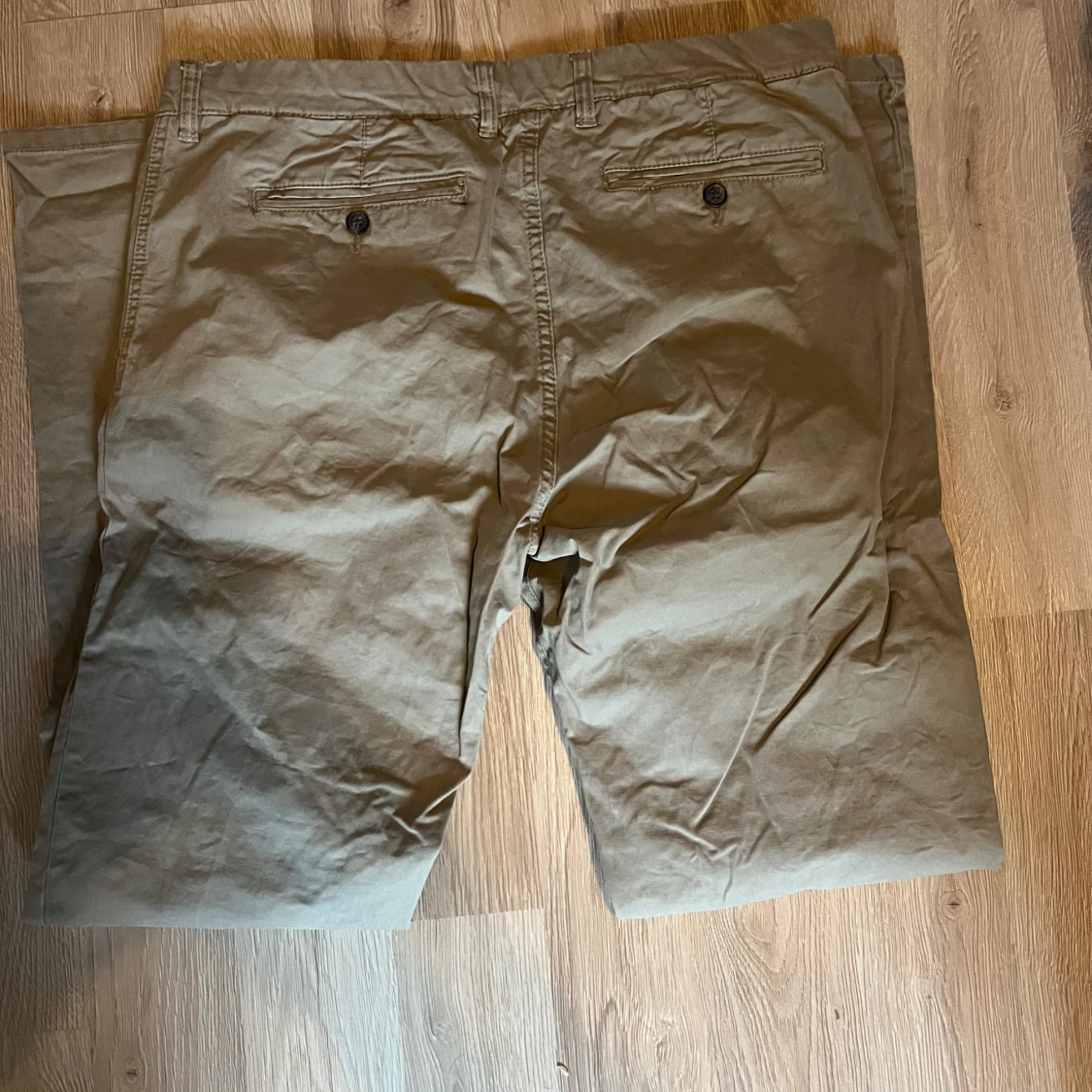 Säljer ett par klassiska beige chinos i normal passform. De har knappar och dragkedja framtill samt fickor både fram och bak. Perfekta för både vardag och lite mer uppklädda tillfällen. Passar bra till höst och vår!
