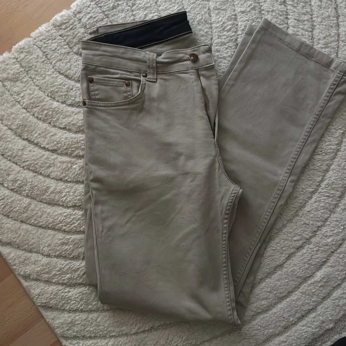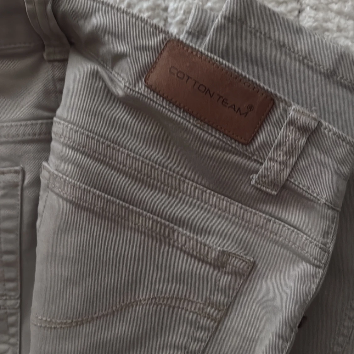 Snygga beige chinos från Cotton Team med klassisk femficksdesign och raka ben. Byxorna är tillverkade i bomull med lite stretch för extra komfort. Perfekta för en clean och avslappnad stil. Passar dig som gillar stilrena och enkla byxor.