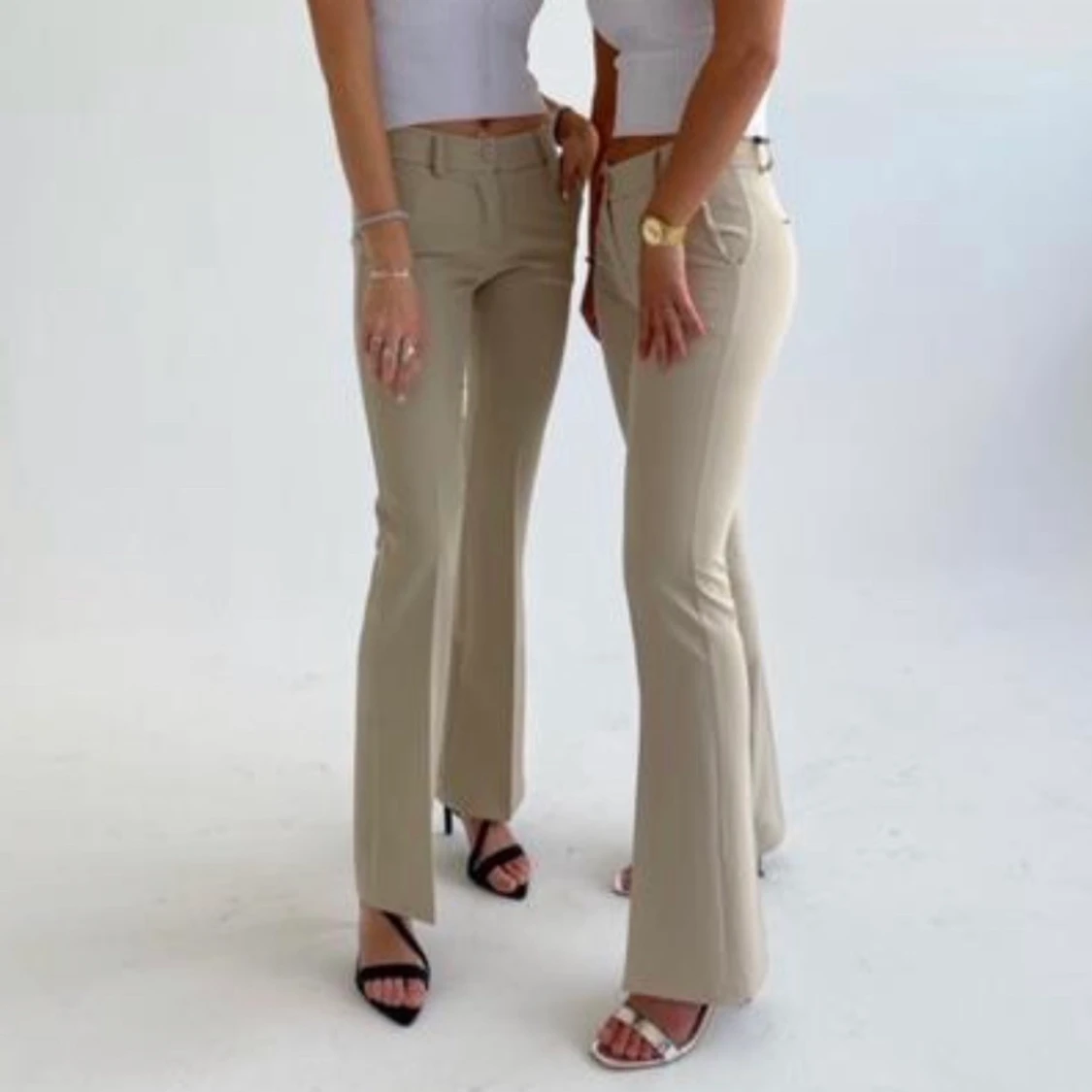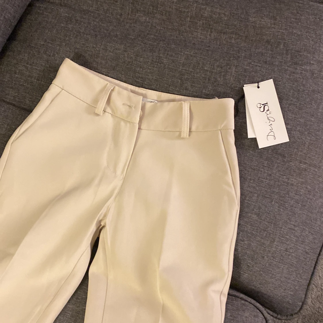 Säljer dessa beiga kostymbyxor från DesignbySi som är helt oanvända pga att de är för små för mig. Jag är 158 cm lång och de passar i längden men är lite för små för mig i låren. Prislappen sitter kvar och köpte dem för 432 kr men säljer för 225 kr. Har lagt in en bild på storleken för er som undrar💕