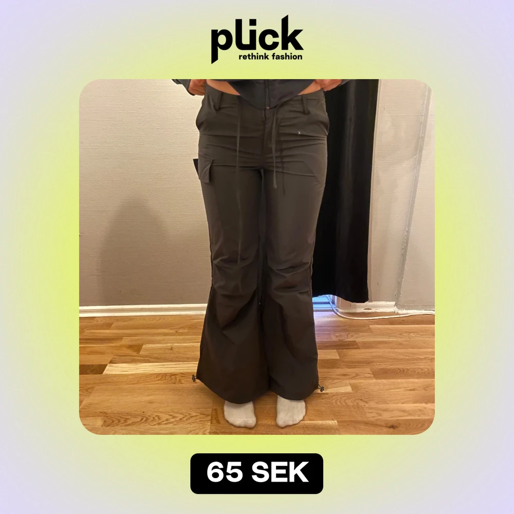 Säljer ett par svarta byxor med vida ben och låg midja. De har en snygg passform och ett skönt material. Byxorna har fickor på sidorna och en stilren design. Perfekta för höst och vinter!