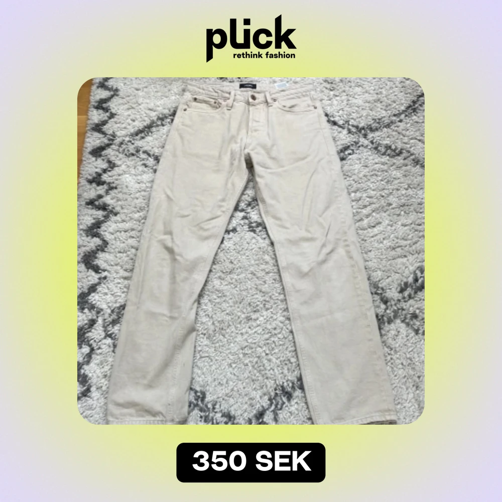 Riktigt schyssta beiga relaxed Jack and Jones jeans. Den är bara testad. Storleken är 30/32. Hör av er vid frågor och pris kan diskuteras.