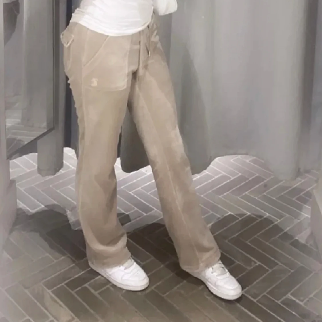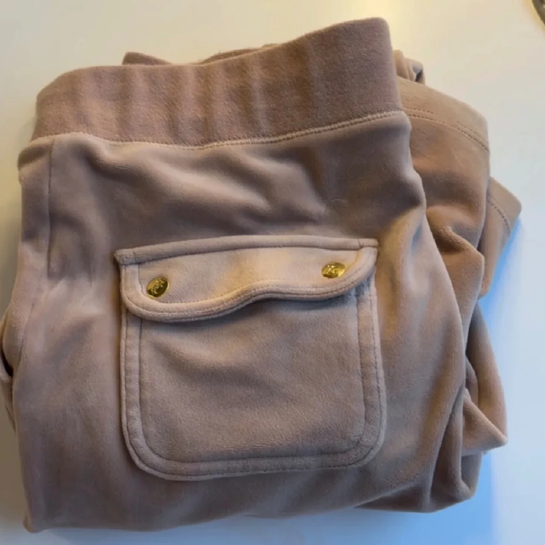 Säljer dessa superfina beiga juicy byxorna med guldknappar, inga defekter❤️ lånade bilder
