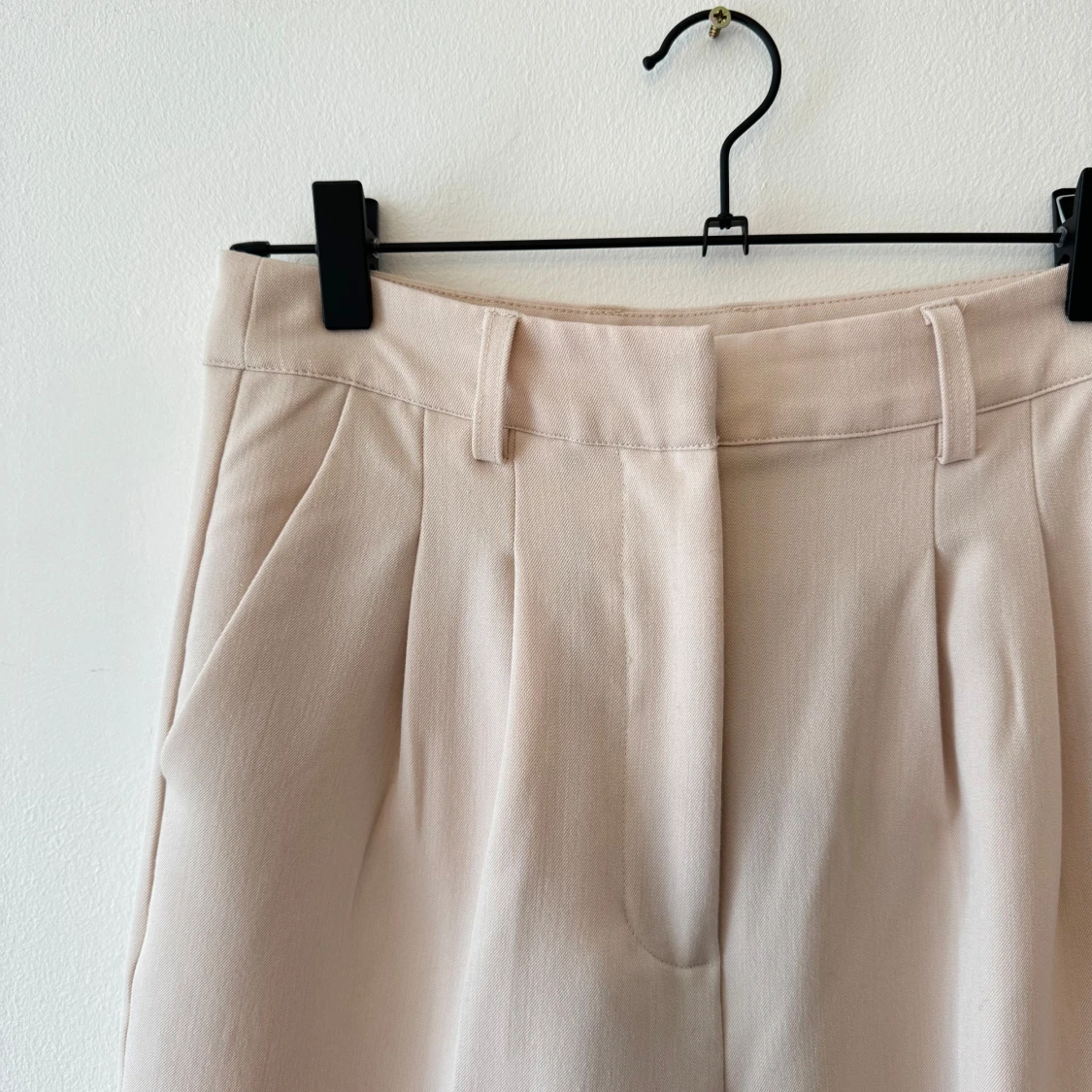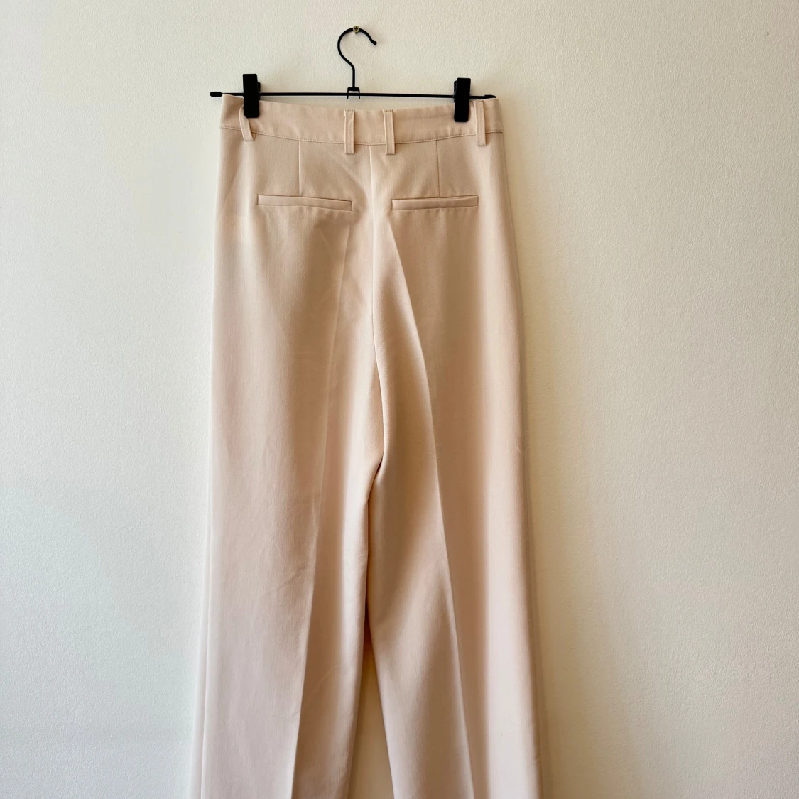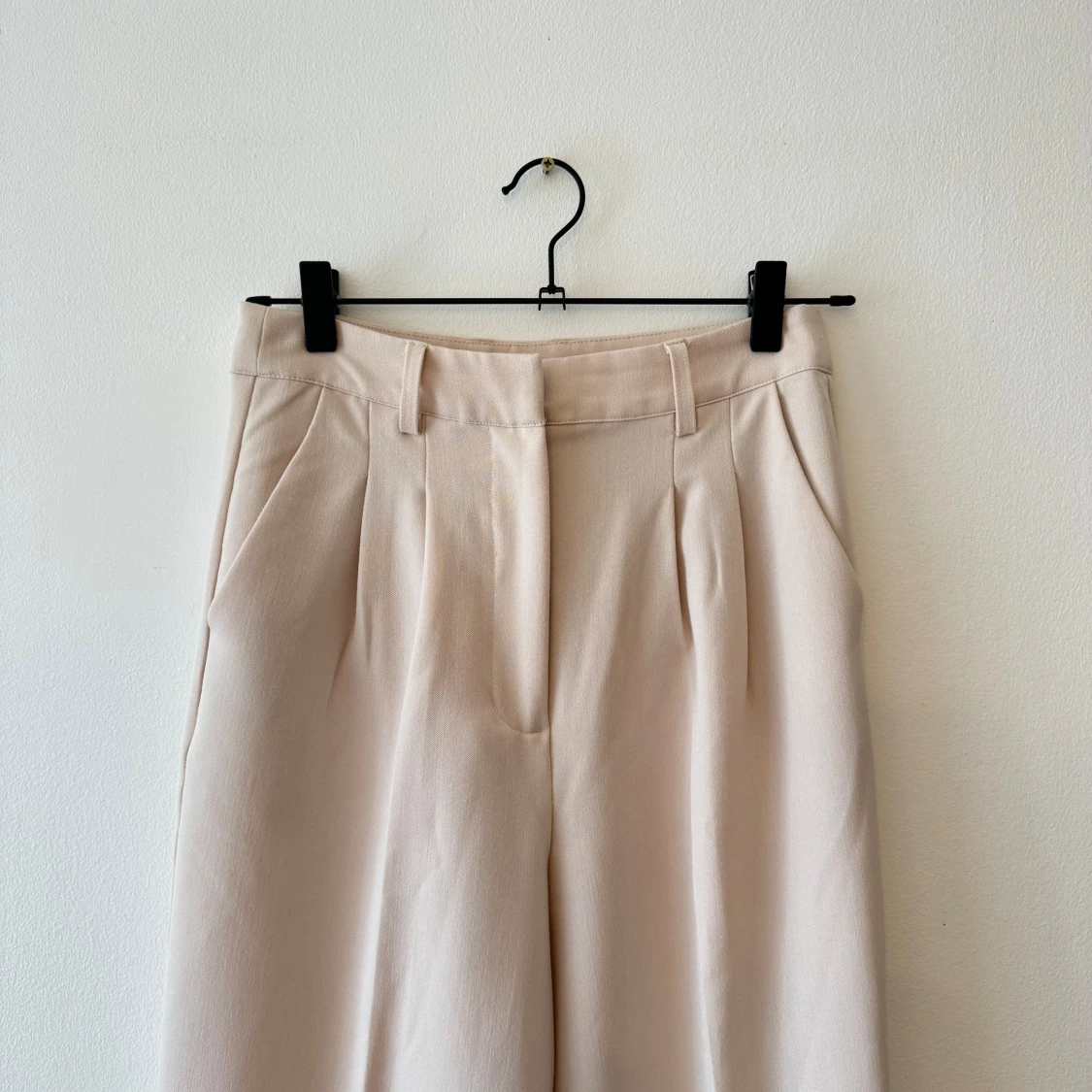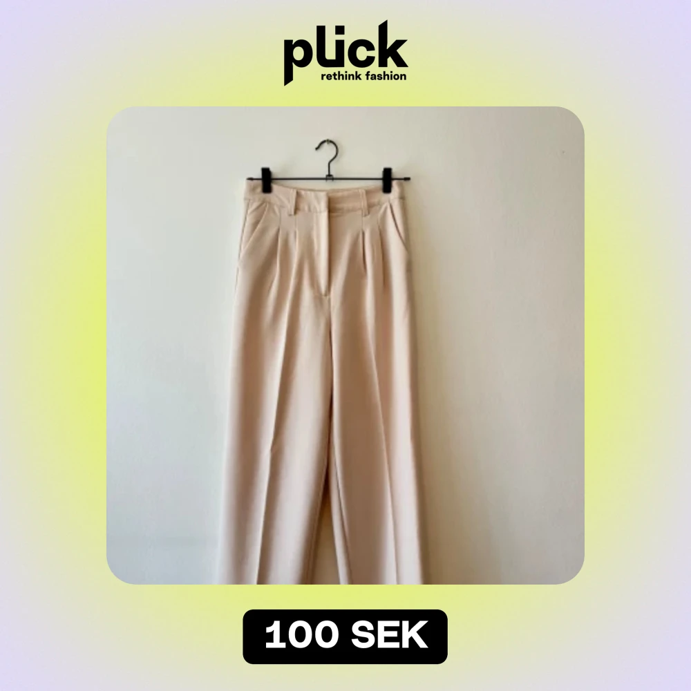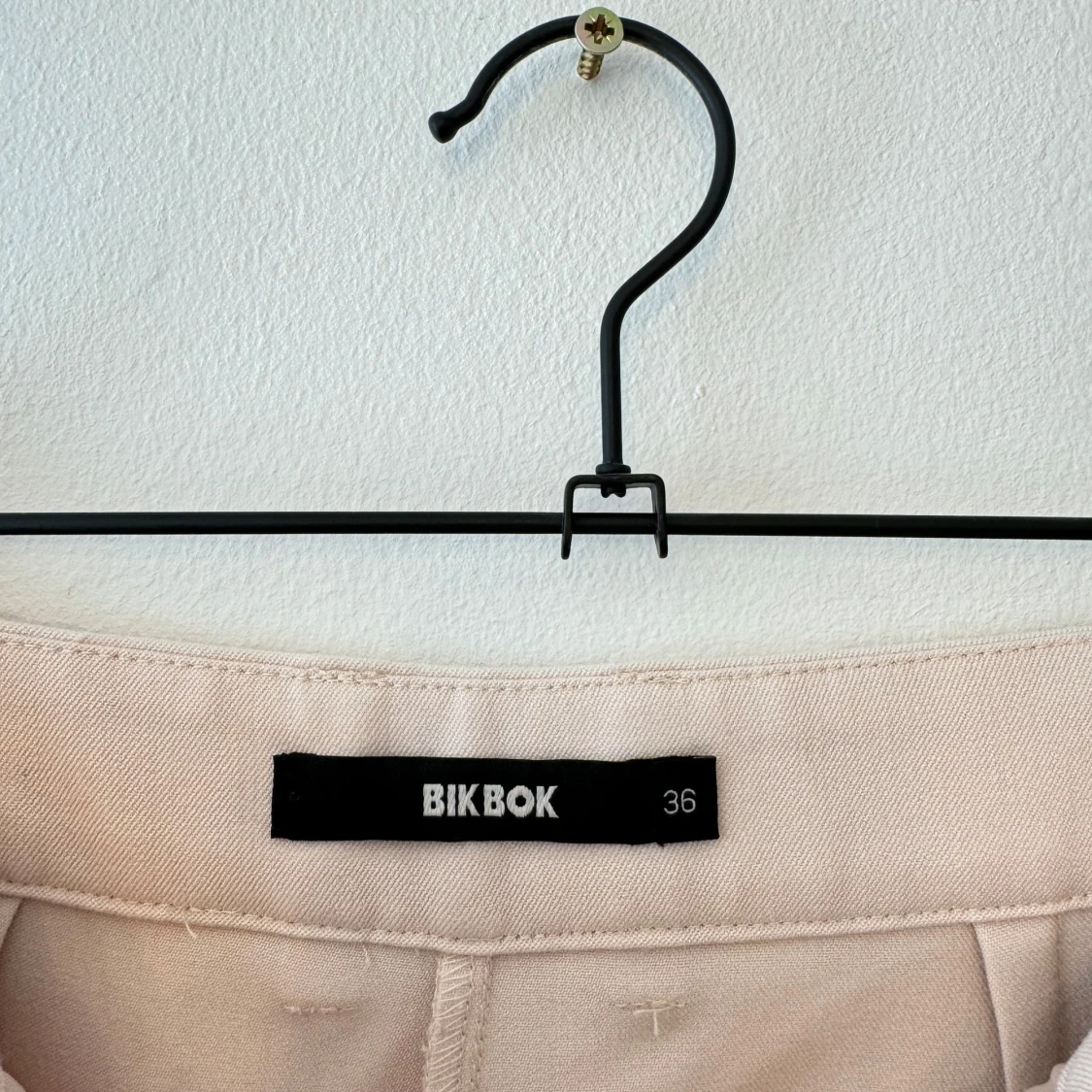 Säljer ett par stilrena beige kostymbyxor från BikBok i storlek 36. Byxorna har en hög midja och en rak passform som ger en elegant look. Perfekta för både kontoret och festligare tillfällen. De är i nyskick och redo att bäras med stil!