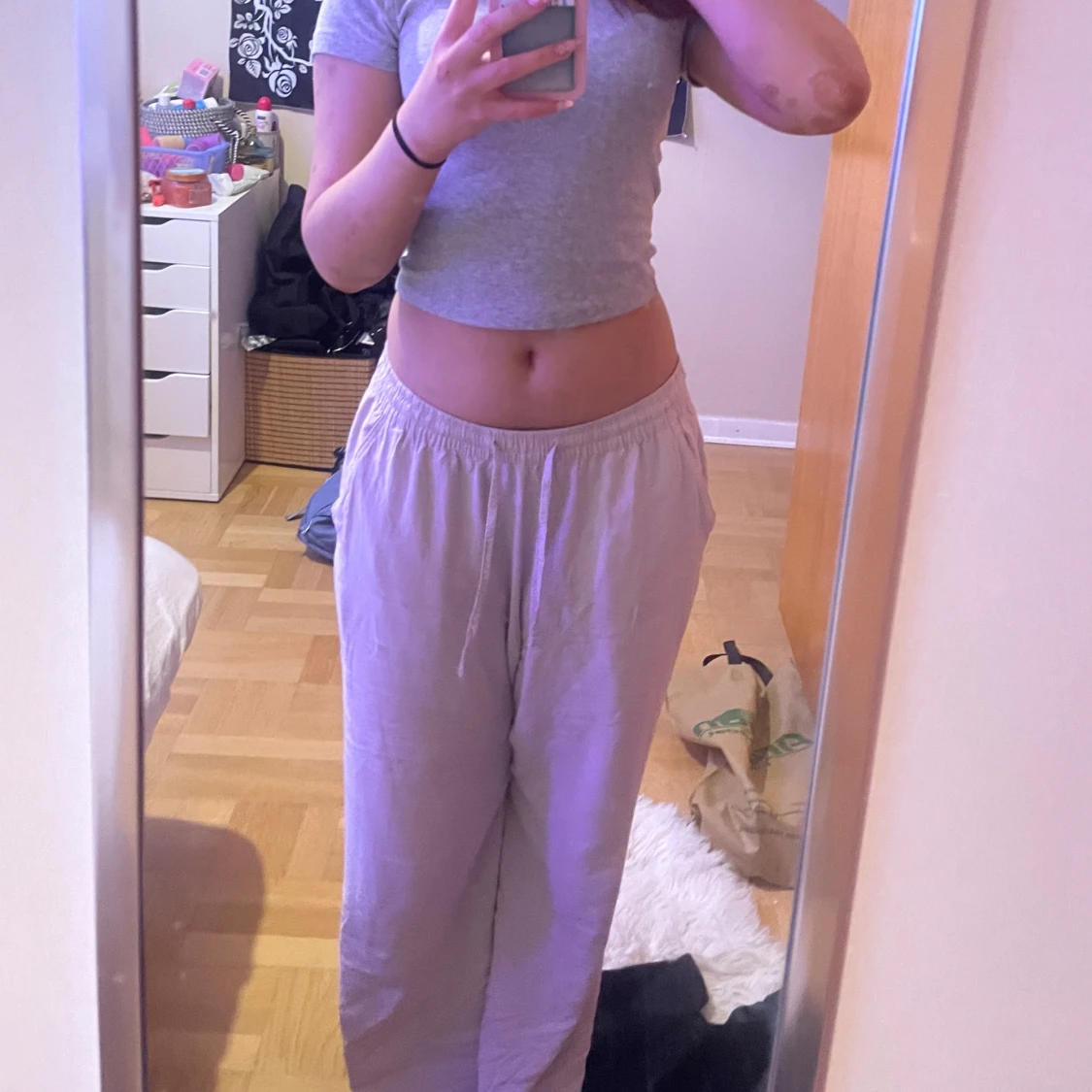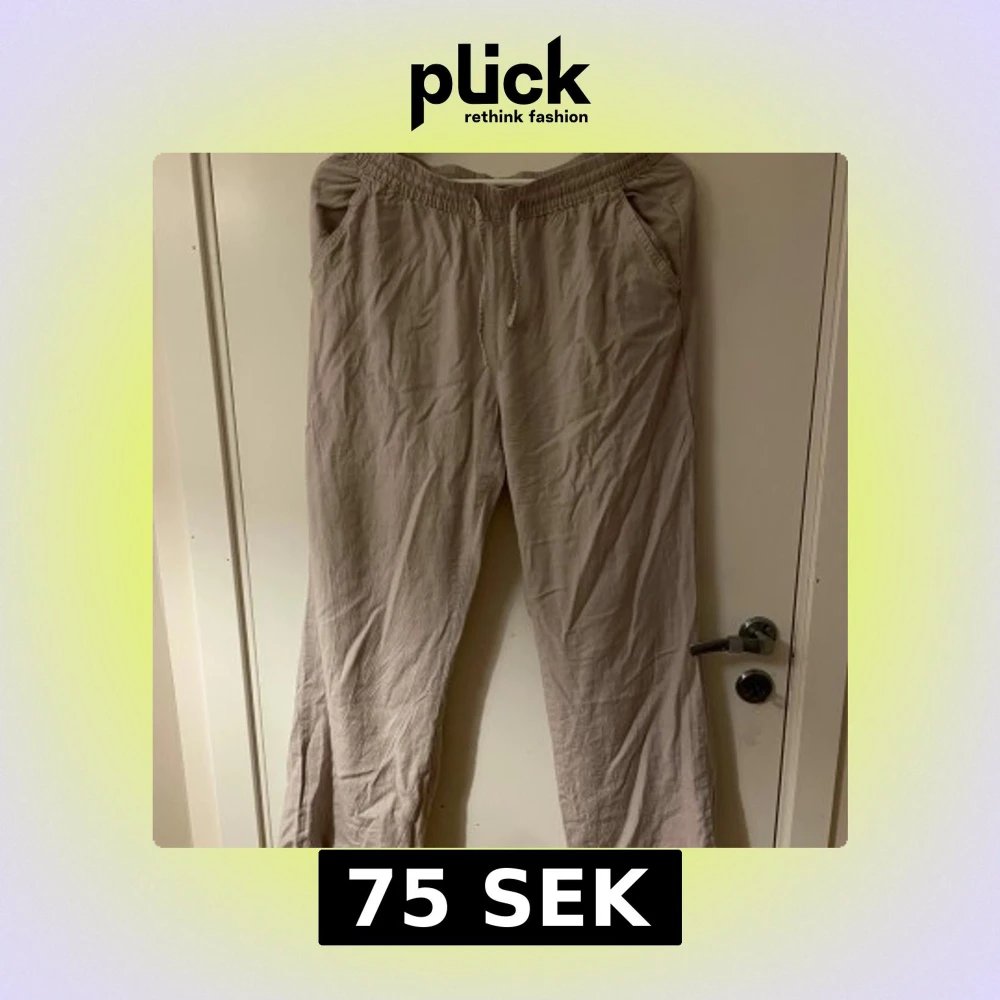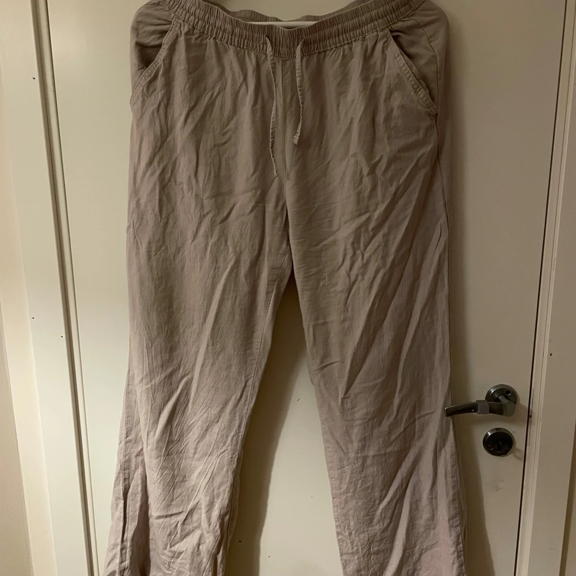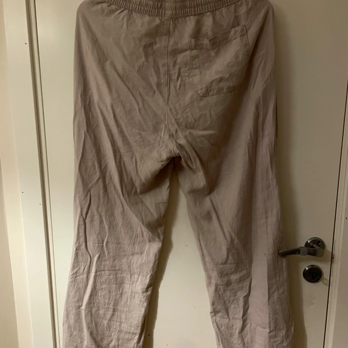 Säljer ett par beiga linnebyxor med resår och dragsko i midjan. Har använts ett fåtals gånger, säljer då jag inte har någon användning av de längre. Använd gärna KÖP NU🩷