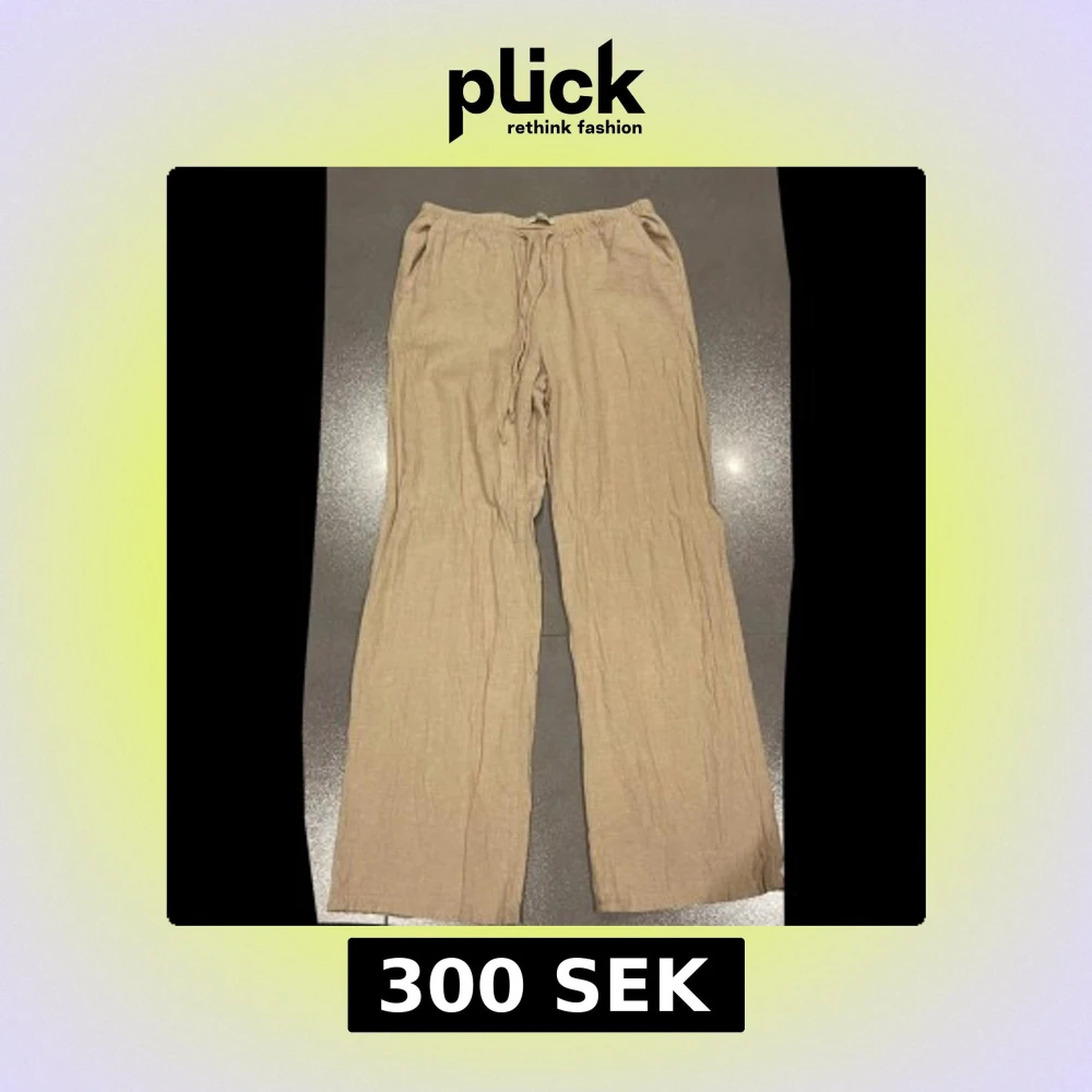 Säljer ett par beige linnebyxor från Gina Tricot. Byxorna har en loose passform med elastisk midja. Skriv för mer bilder eller andra frågor :)