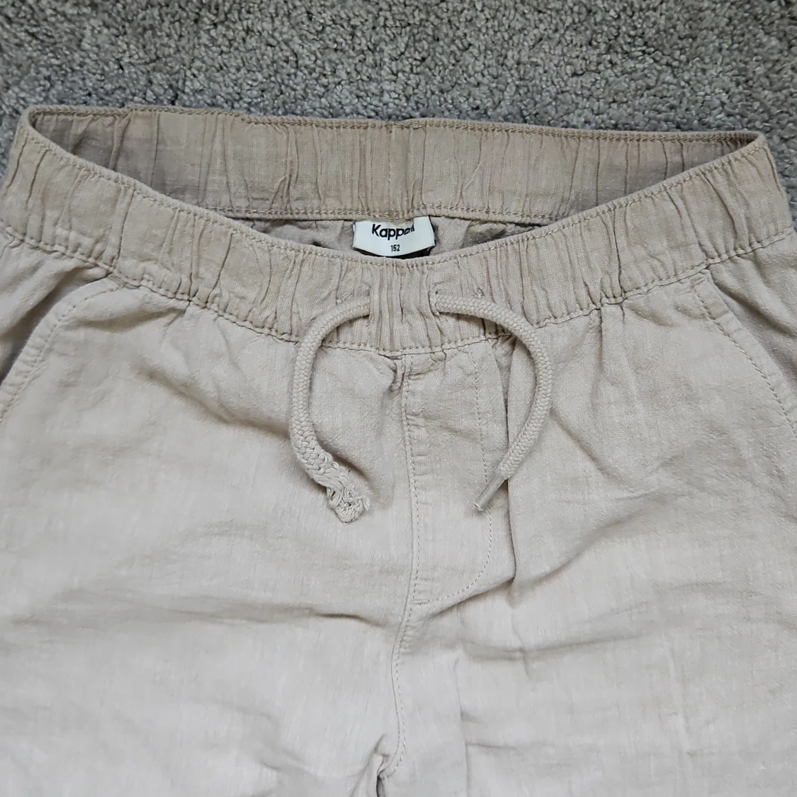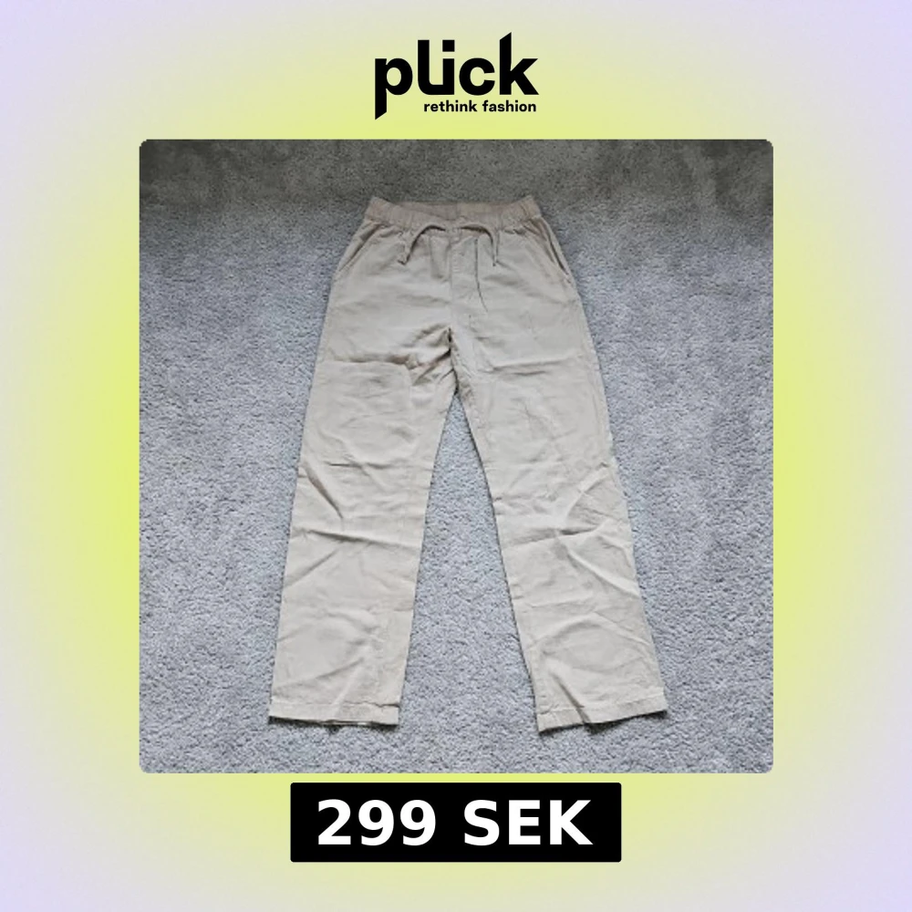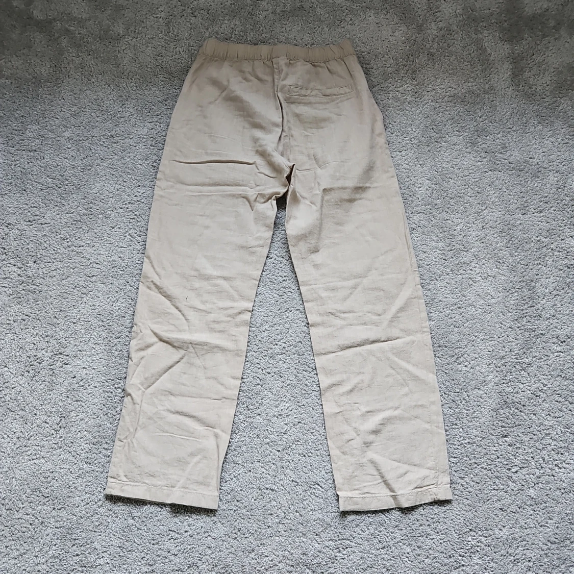 Snygga beige linnebyxor från Kappahl med elastisk midja och snörning framtill. Byxorna har raka ben, sidofickor och en bakficka. Perfekta för en klassisk stil, men som ändå sticker ut lite.
