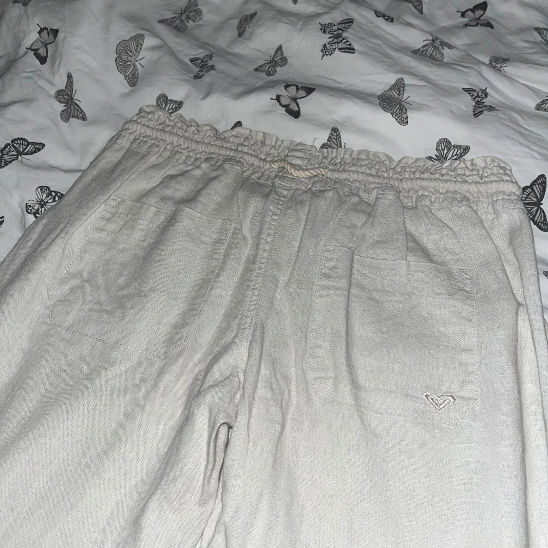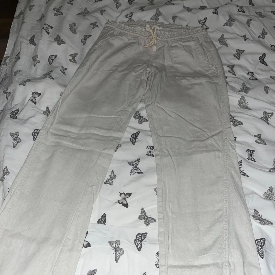Säljer ett par bekväma beige byxor från Roxy. De har en elastisk midja med snörning och raka ben. Perfekta för en avslappnad stil. Säljer dom pga att dom aldrig kommer till användning! Inte tvättade någon gång alltså helt nya!