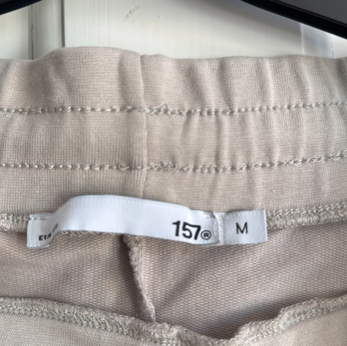 Beiga mjukisbyxor från 157 med dragsko i midjan och raka, lite vidare ben. Byxorna är tillverkade i mjukt bomullsmaterial och har en enkel, clean look utan synliga loggor eller detaljer. Perfekta för en chill och avslappnad stil.