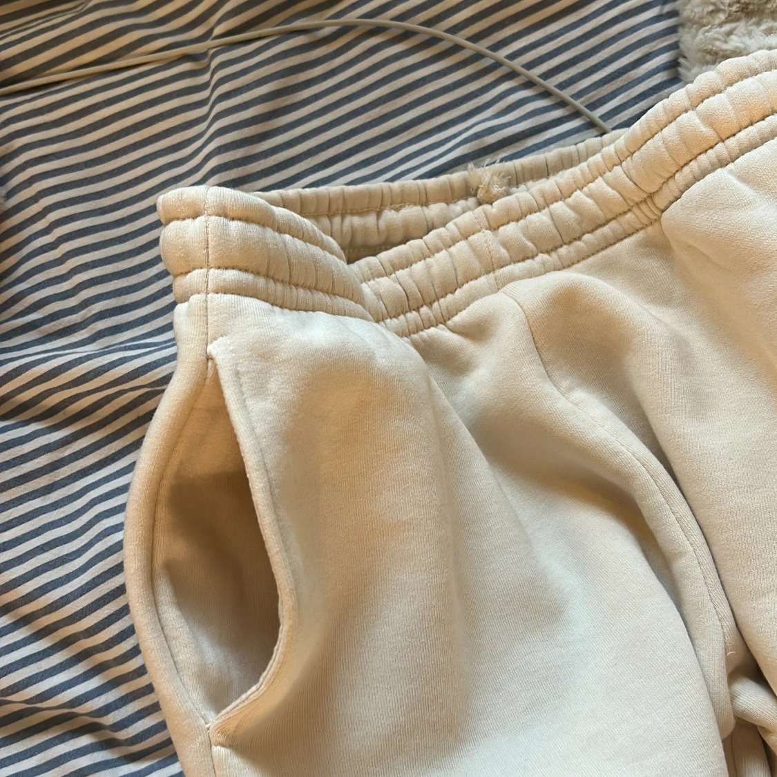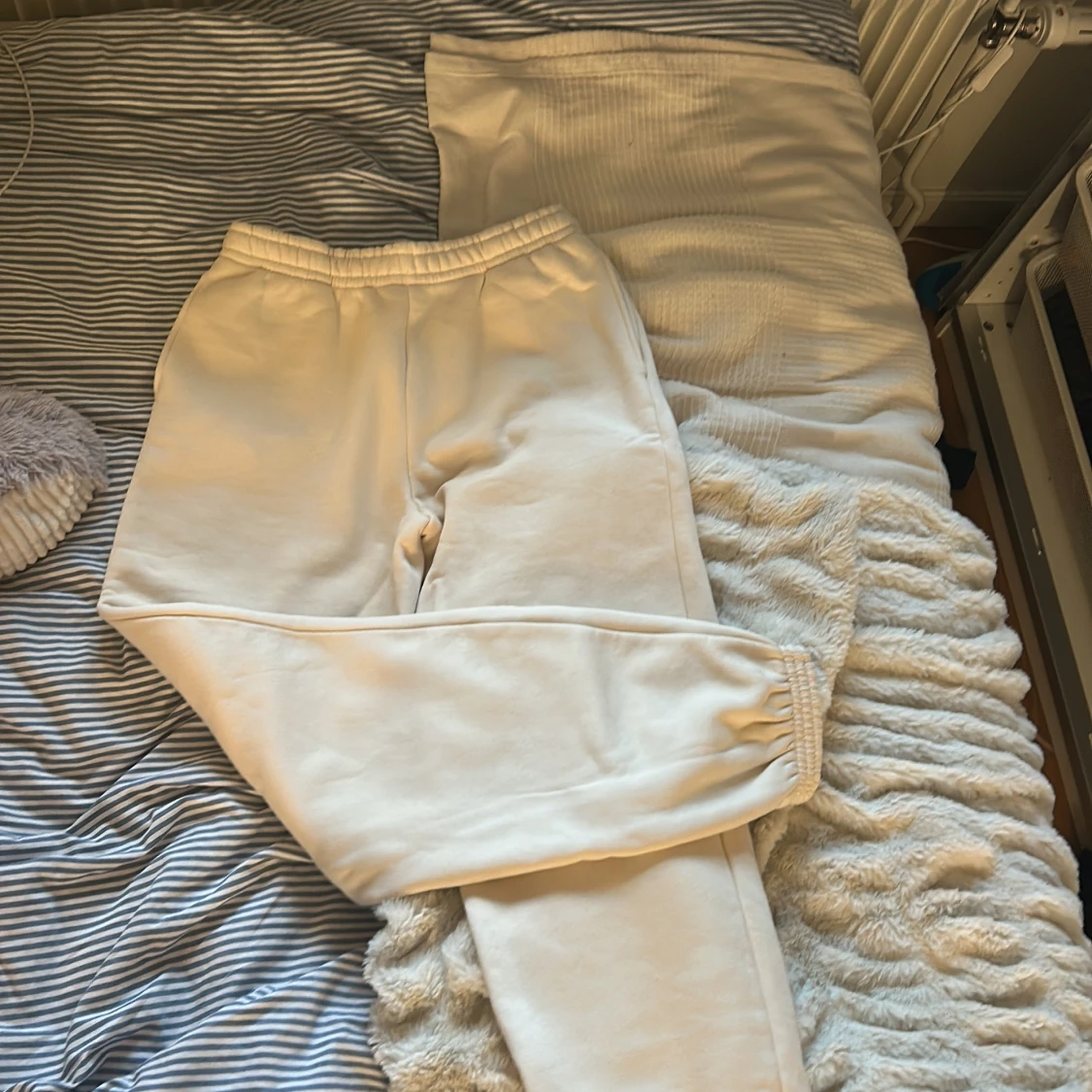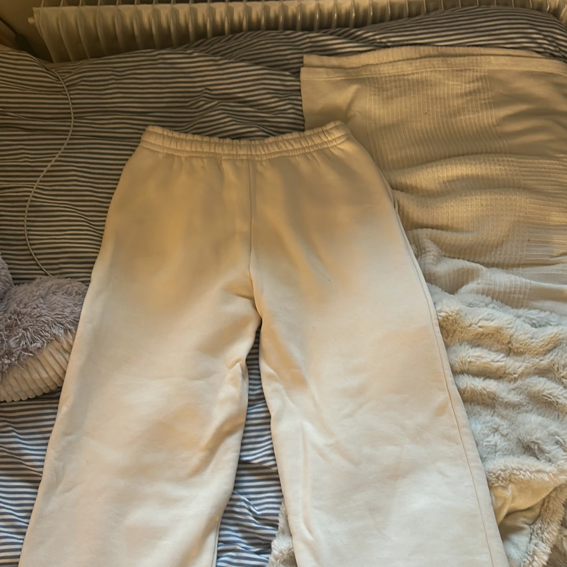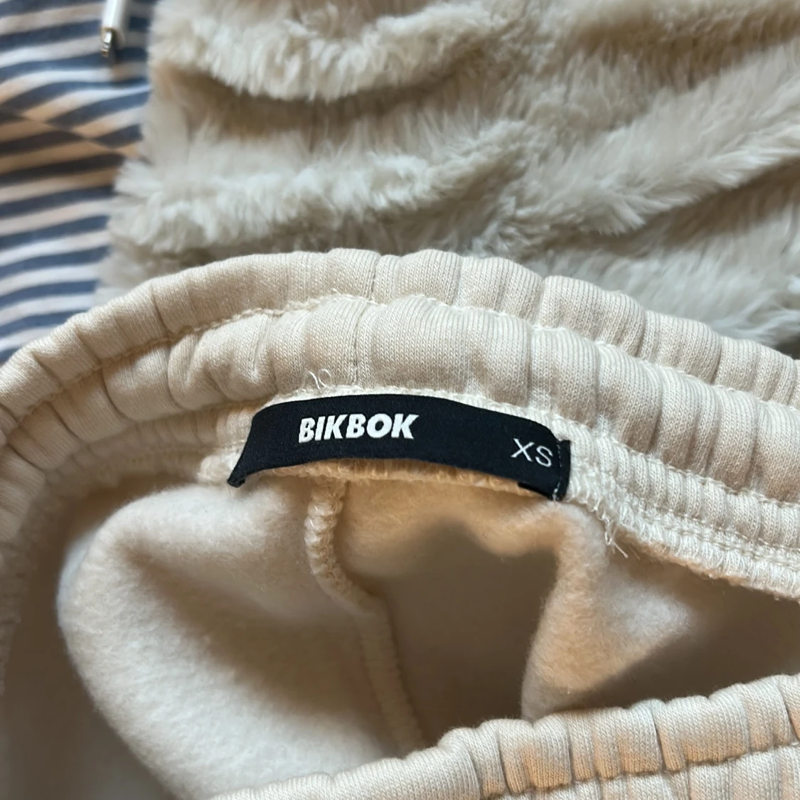 Beigea mjukisbyxor från BikBok i storlek XS. Oanvända och är fortfarande mjuk och fluffig på insidan!