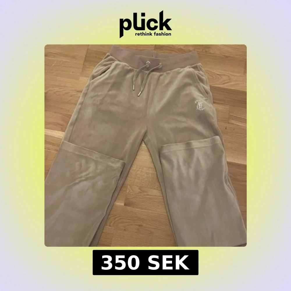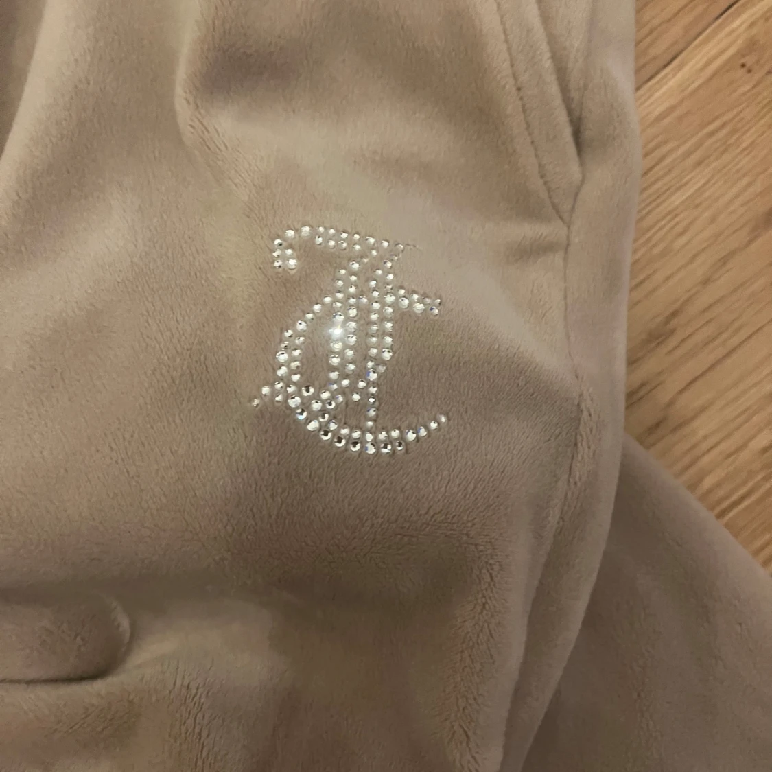 Beige mjukisbyxor från Juicy couture knappt använda, glittrande detaljer. Snörning i midjan.