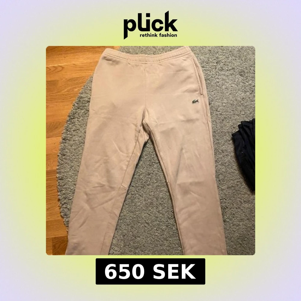 Säljer ett par snygga och stilrena Lacoste-joggers i beige färg. • Storlek: FR 4 (US Medium). • Kvalitet: Mjuk och bekväm bomull, perfekt för både vardagsbruk och avslappning. • Detaljer: Klassisk Lacoste-logga broderad på sidan för en exklusiv look. •