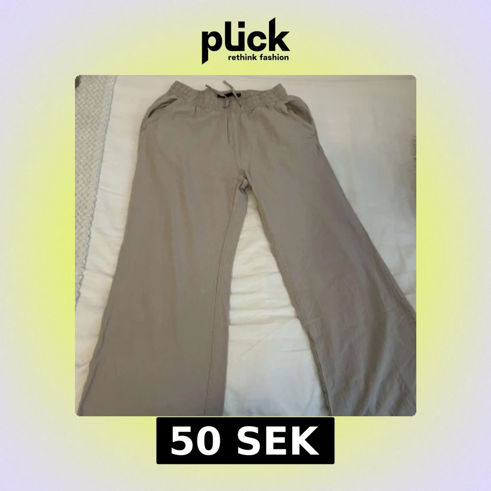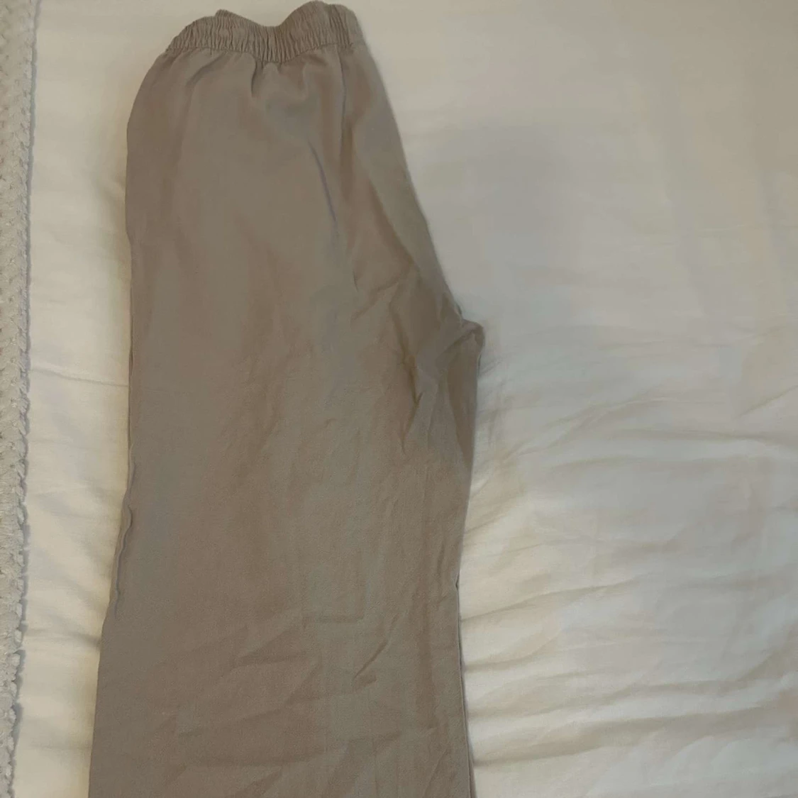 Snygga beige mjukisbyxor med elastisk midja och snörning. Byxorna har raka ben och sidofickor, perfekta för en chill och avslappnad stil. Tillverkade i mjukt material som känns skönt mot huden.