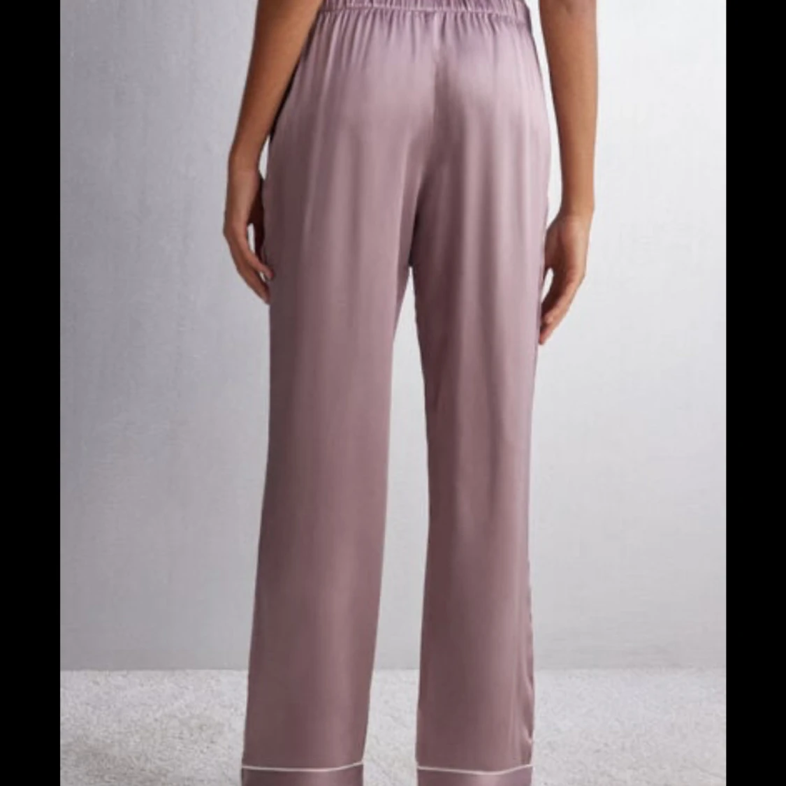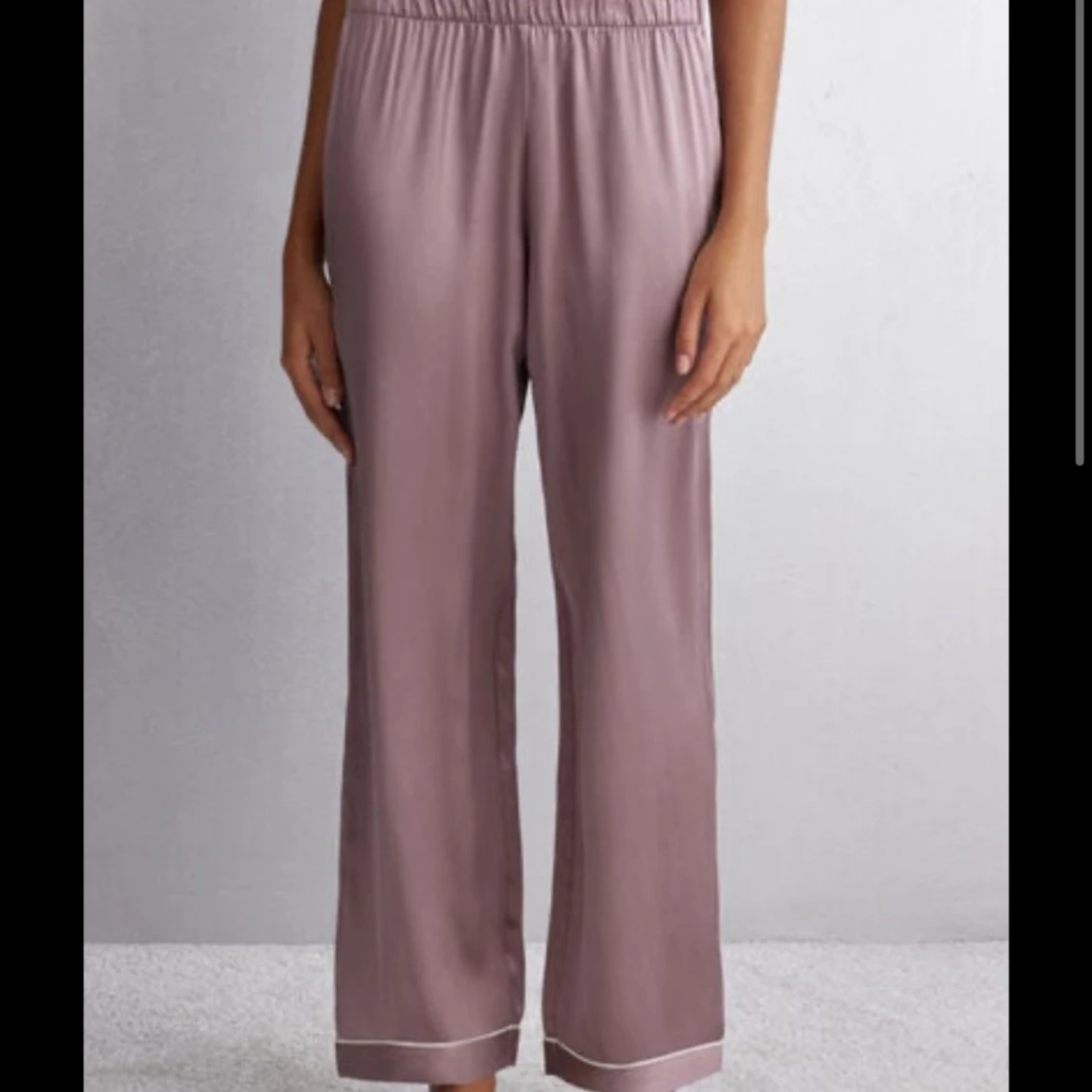 Säljer ett par superbekväma helt nya pyjamas i satin med tagg. Bilderna är lånad för att visa modellen så den är egentligen lila som på sista bilderna. Säljer pga ville ge de som present men kunde inte. nypris är 900kr
