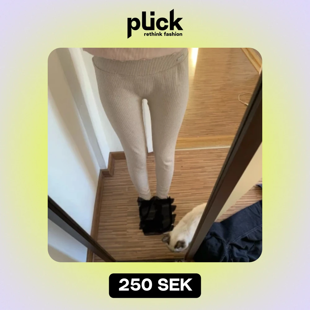 Säljer ett par superbekväma beige ribbade leggings från Aim'n. De är högmidjade och har en tight passform. Materialet är mjukt och stretchigt. Använda 1 gång men säljes pga rensning i garderoben. Storlek M. Nypris 600kr men säljes för endast 250kr