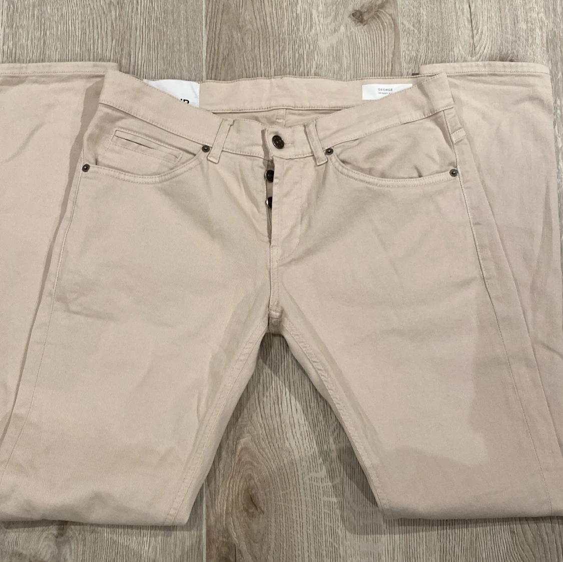 Snygga beige skinny jeans från Dondup med klassisk femficksdesign och diskreta nitar. Byxorna har en smal passform och är tillverkade i bomullsmix för en bekväm känsla. Perfekta för dig som gillar stilrena och ljusa jeans. Jeansen är helt nya utan prislapp