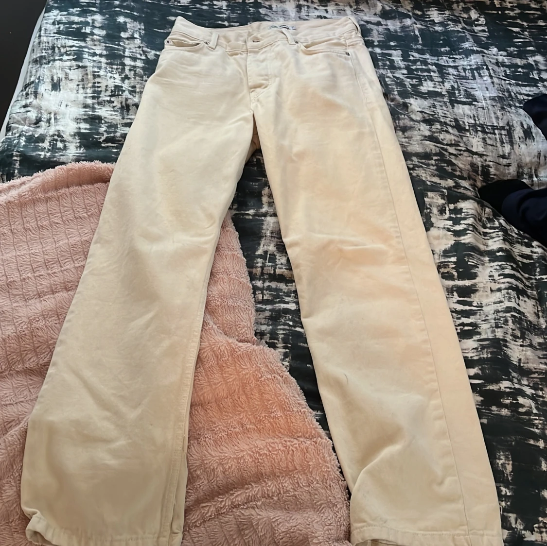 Snygga beige jeans från Junkyard Nevermind i rak modell. Byxorna har klassisk femficksdesign och är tillverkade i ett mjukt bomullstyg. Perfekta för dig som gillar en clean och stilren look.
