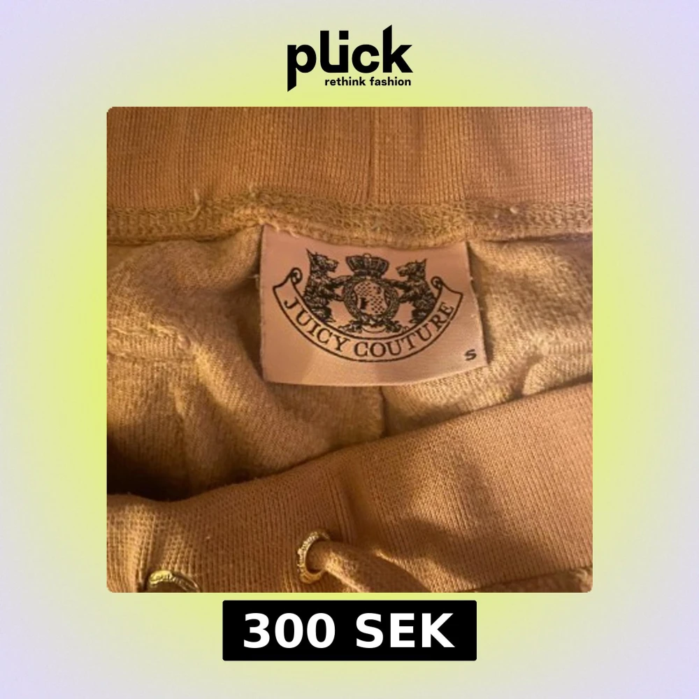 Säljer ett par klassiska beige velourbyxor från Juicy Couture med guldfärgade strasstenar och broderad krona på baksidan. Byxorna har resår och dragsko i midjan samt fickor fram. Perfekta för en avslappnad och trendig look.