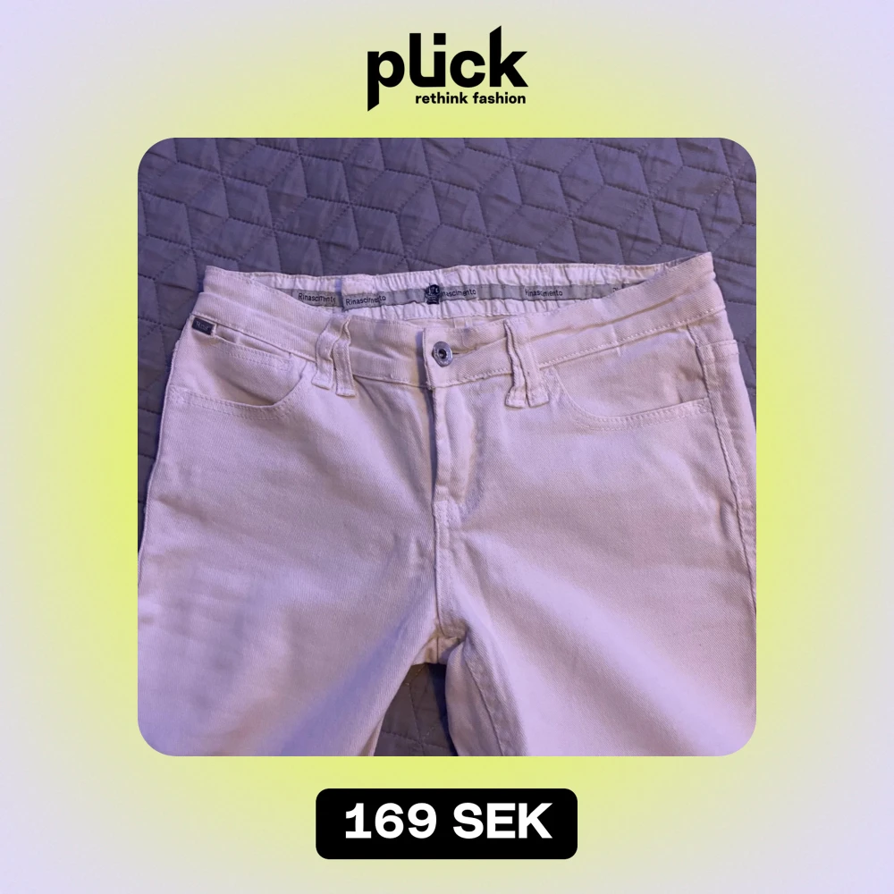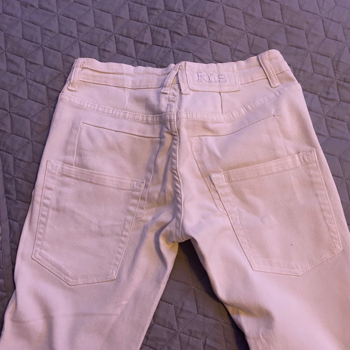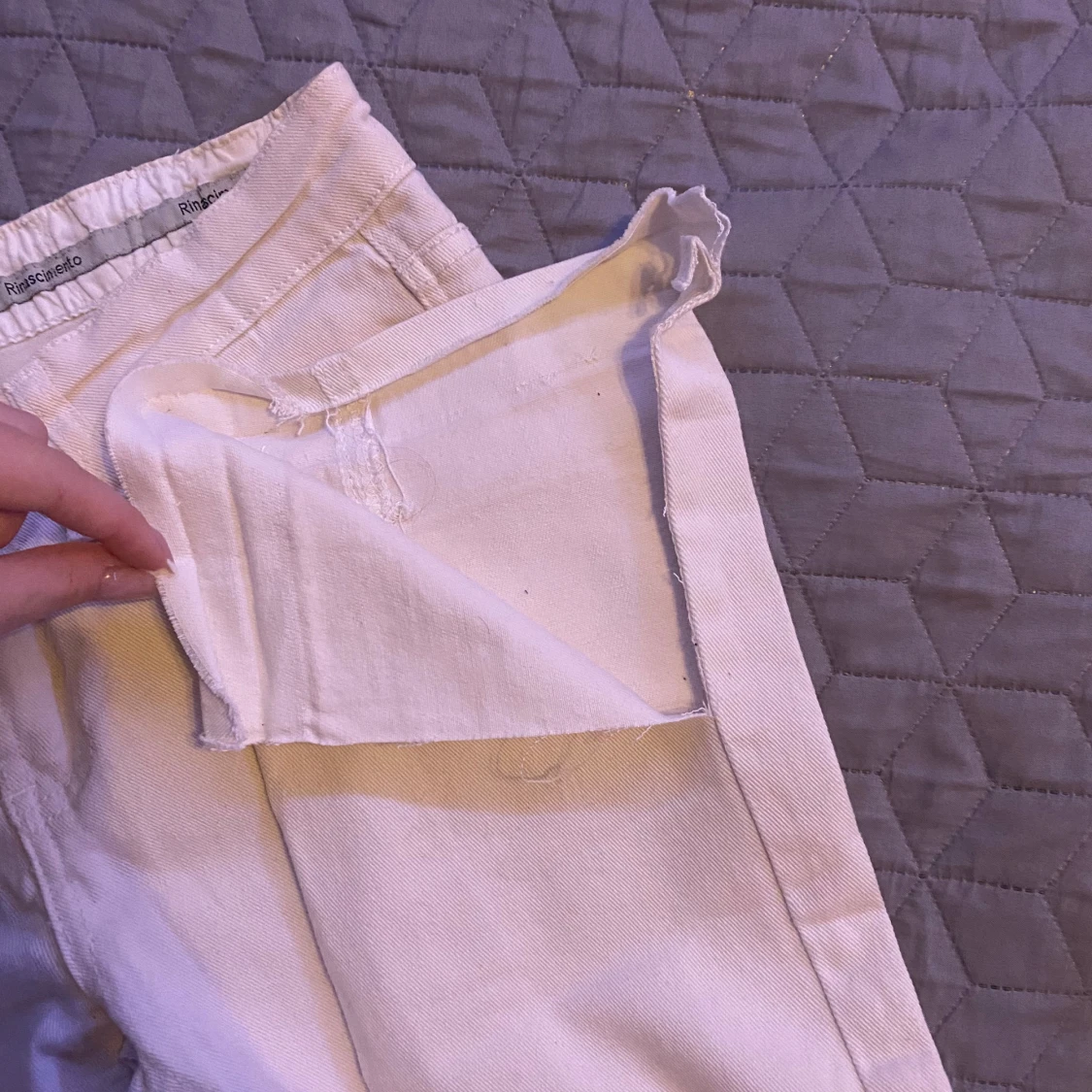 Lågmidjade, slit på utsidan av benen längst ner, knappast använda, märket är Rinascimento (italienskt), coola fickor, ner till golvet på mig som är ca 170cm. Står inte vilken storlek dem är men skulle säga XS/S men lutar mer mot XS💞