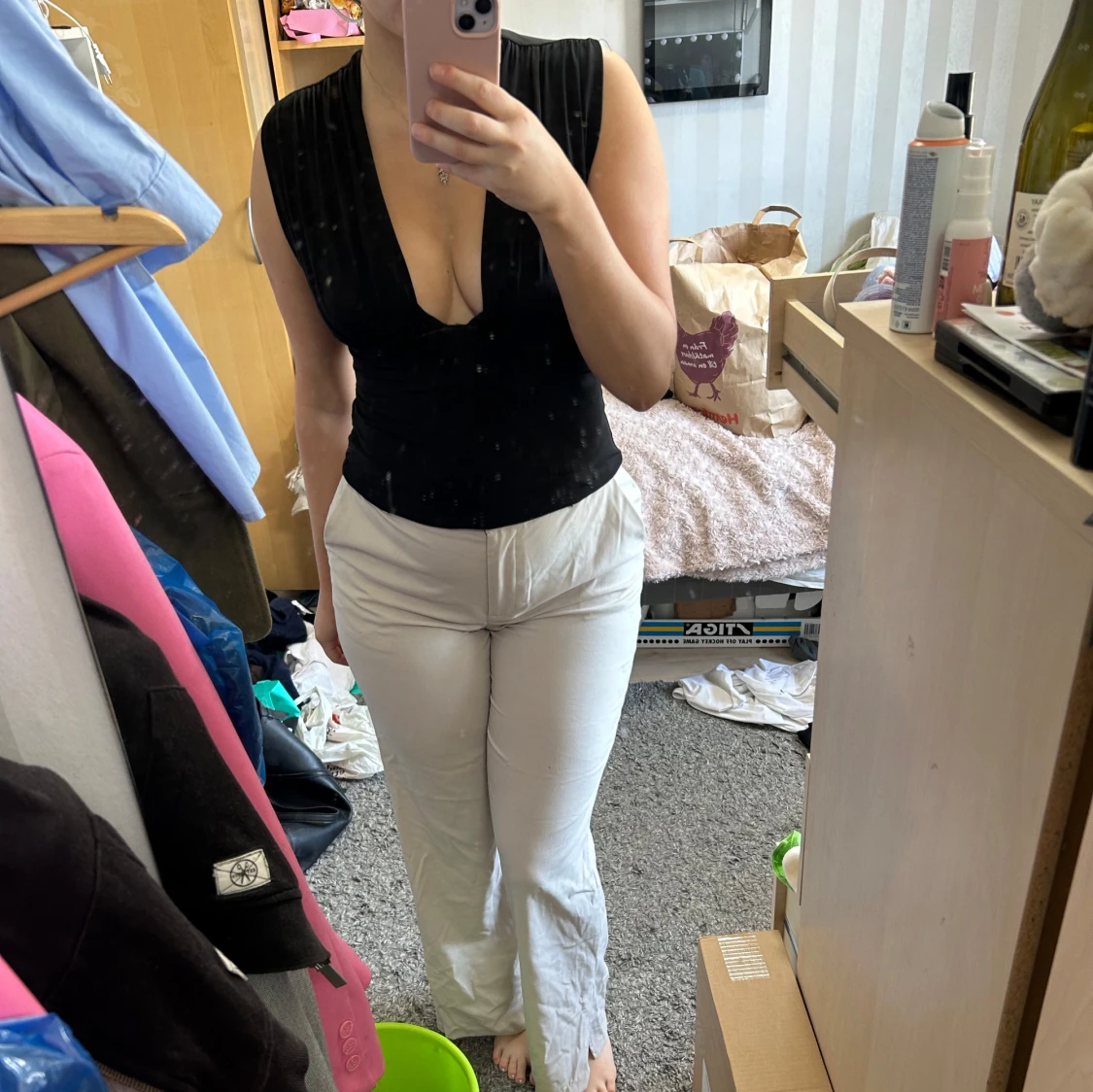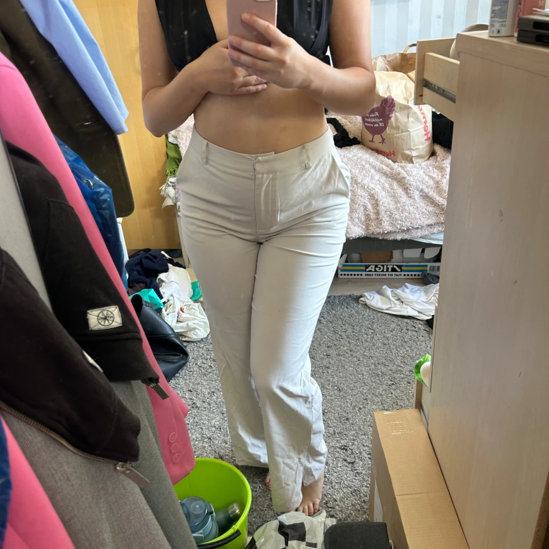 Säljer ett par beigea kostymbyxor från NAKD som är väldigt sparsamt använda, kanske 2-3 gånger max. Byxorna är höga i midjan. Nypris 599kr🩷