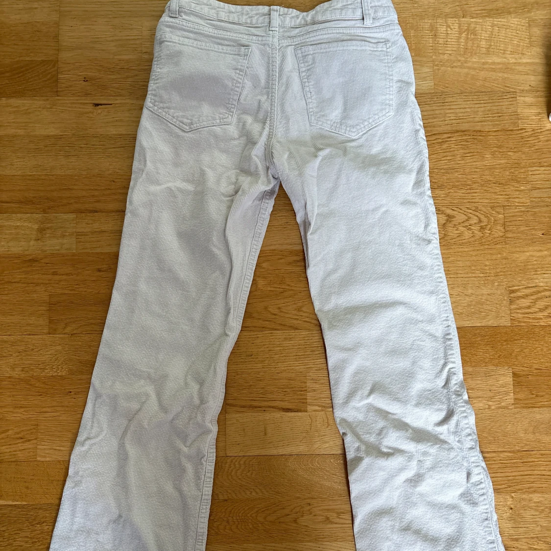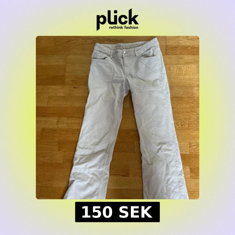 Beiga lågmidjade manchesterbyxor i bootcut modell köpa på hm. Liten liten fläck längst ner på benet, som jag dock tror går bort i tvätten!