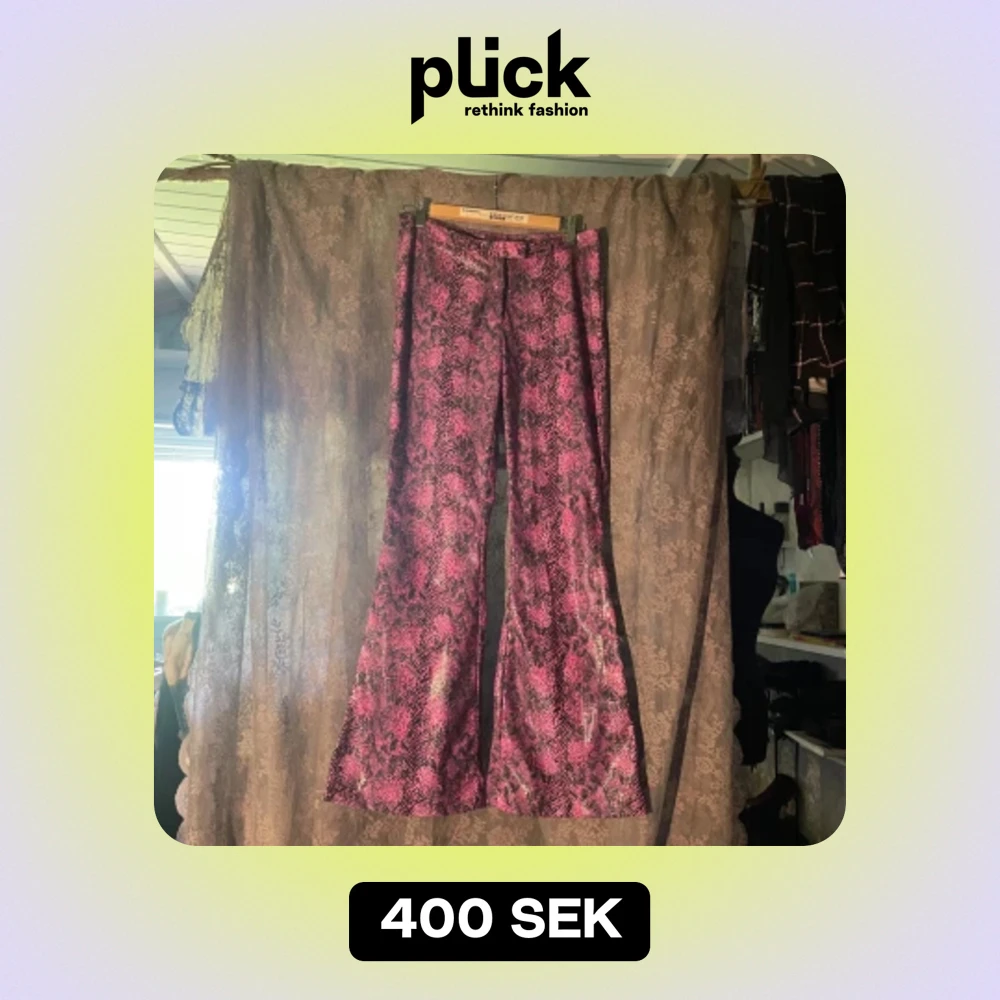 Snygga och sköna Bell bottoms 💕 fint material, sköna att ha på och inga skador. Som M så passar dom inte tyvärr för tight. Har inte hittat de online än så vet inte om de säljs längre har inte ens hittat märket som dom är från