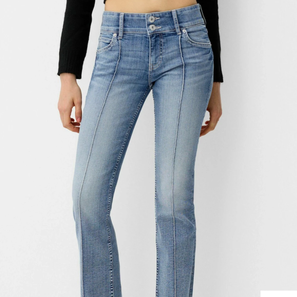Snygga populära bootcut jeans med en klassisk tvätt och sömmar längs benen. Perfekta för en avslappnad stil med en touch av retro. Passar bra till både sneakers och klackar. Från Bershka