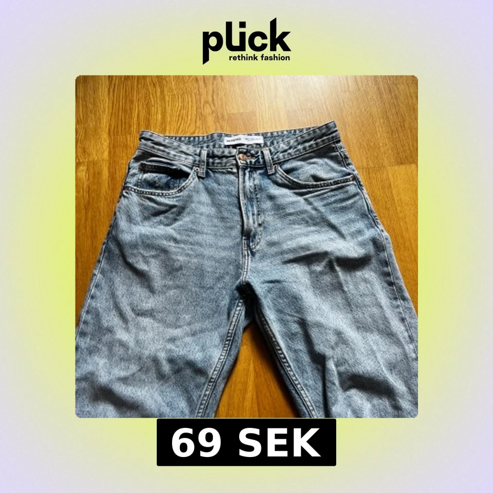 Säljer ett par ljusblå jeans från Bershka i storlek 40, knappt använda. Straight passform.