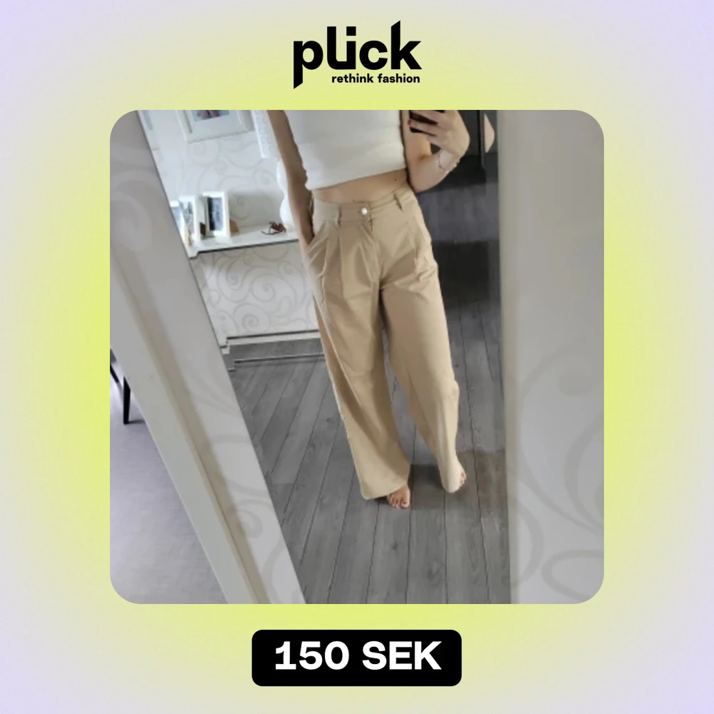 Ett par beige byxor från Bershka i storlek EUR 36. Byxorna har hög midja och en lös passform med raka ben. De har knappar och dragkedja framtill samt fickor på sidorna.