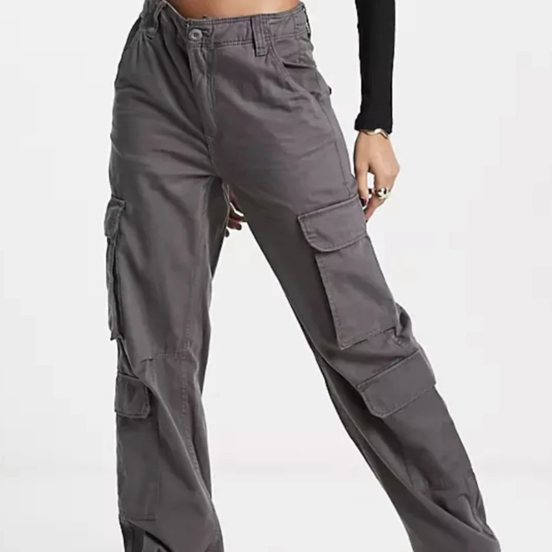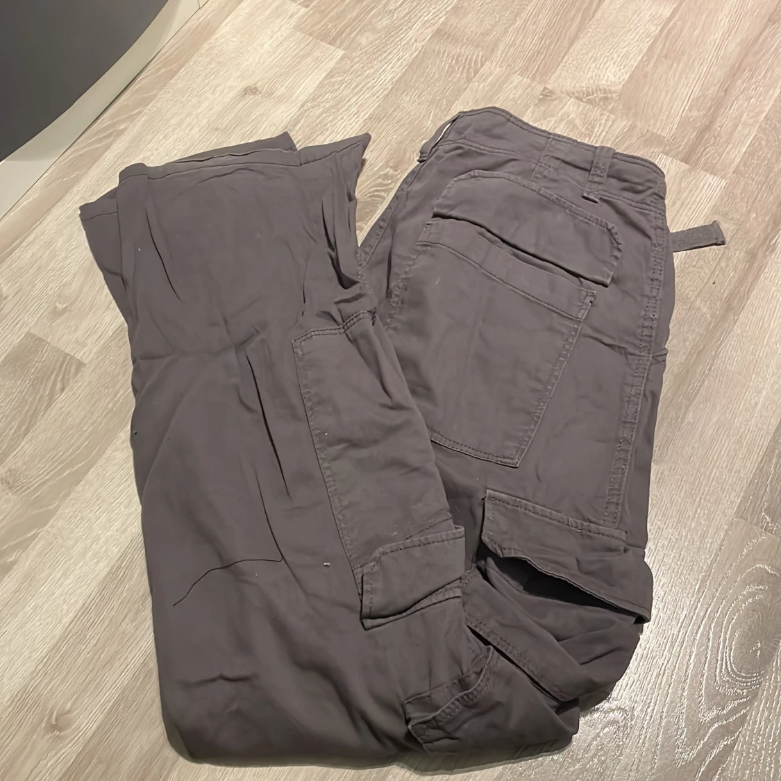 Gråa cargobyxor, använda fåtal gånger. I storlek 40, köpta från bershka i Berlin 2022. Riktigt balla feta byxor som bara inte riktigt kommit till användning, därav säljs de. Köptes för 400-500kr. Mitt pris 250kr. Har snöre i midjan så de kan anpassas.