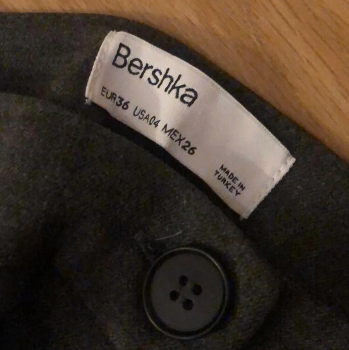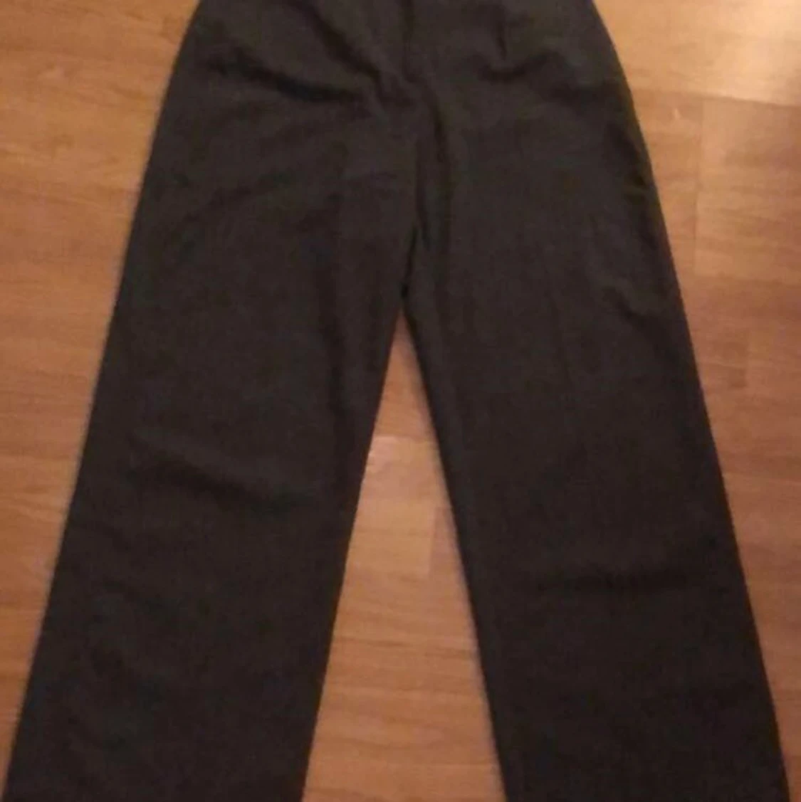 Gråa kostymbyxor från bershka i strl 36. Aldrig använda. De är vida i benen så tajta i låren den stora i vaderna. Dom sitter jättebra i midjan. Fråga om fler bilder:) köparen står för frakt 💕