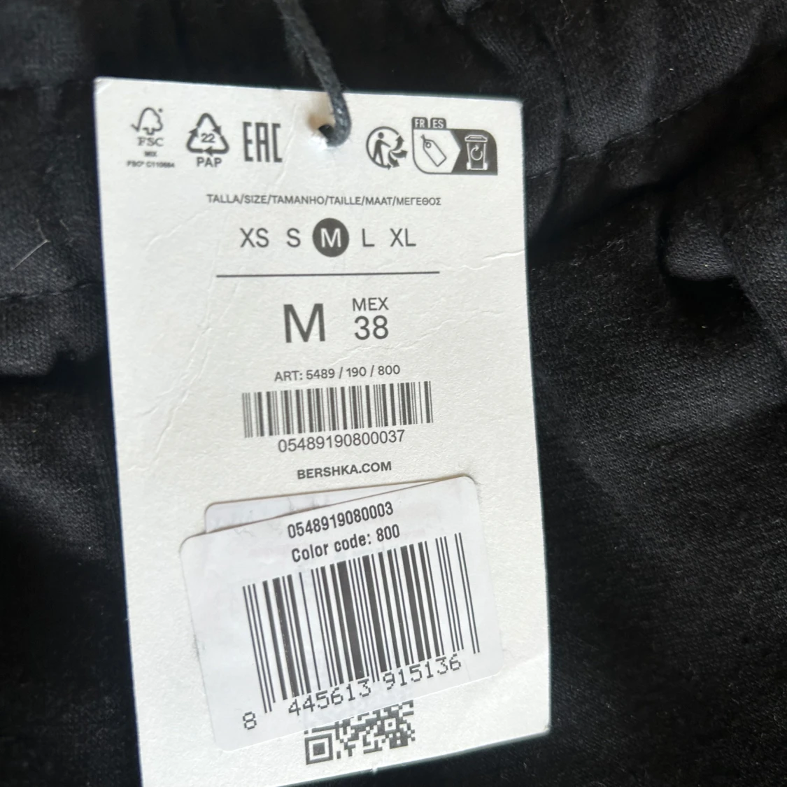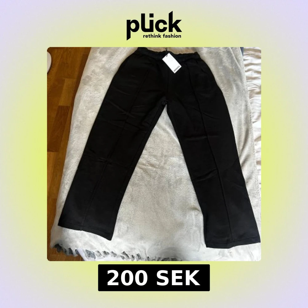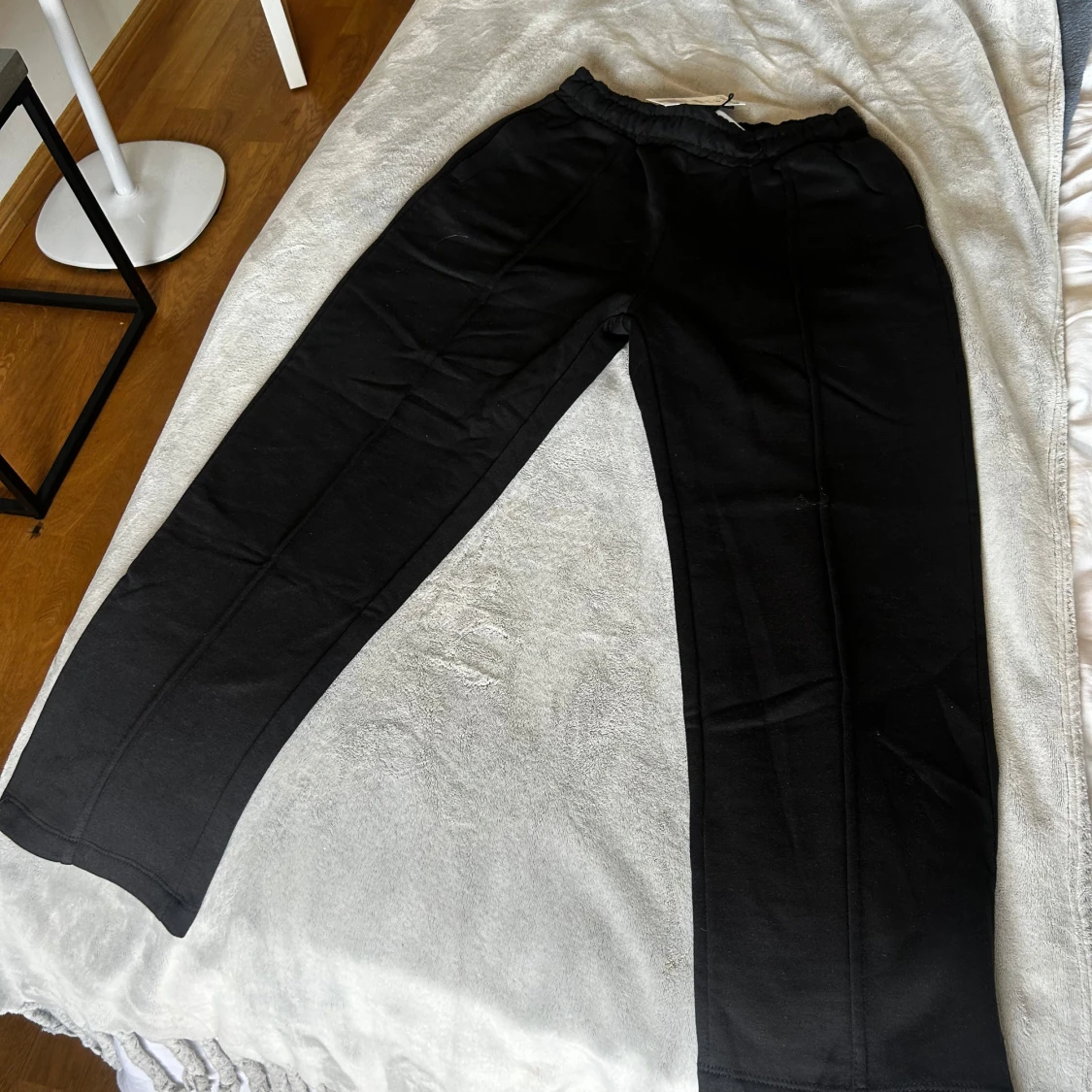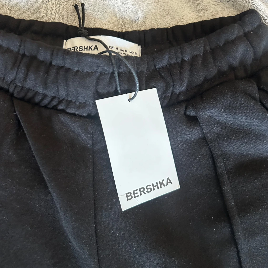 Svarta mjukisbyxor från Bershka i storlek M med elastisk midja och raka ben. Byxorna har en clean look och är tillverkade i mjukt material som känns skönt mot huden. Perfekta för en chill och avslappnad stil.