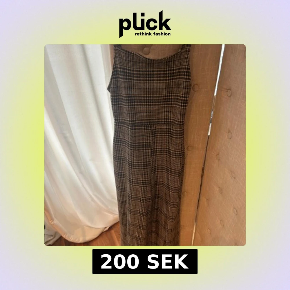 Snygg rutig byxdress från Bershka i storlek S. Byxdressen har smala justerbara axelband och vida ben, vilket ger en chill och trendig look. Färgen är en mix av beige, svart och brunt i ett klassiskt rutmönster. Perfekt för dig som gillar att sticka ut med mönster.