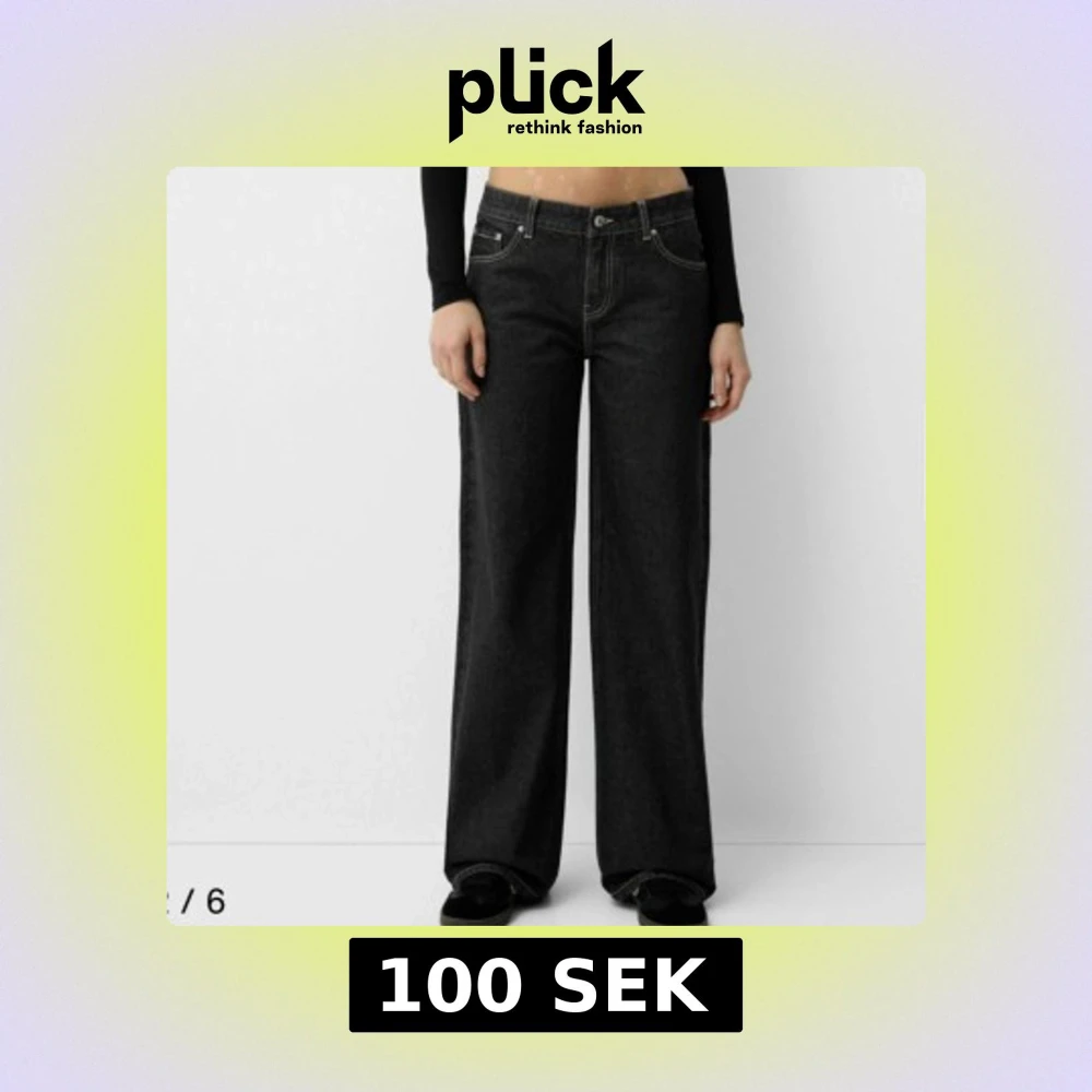 Snygga mörkblåa jeans med breda ben. Lågmidjade jeans, som är trendig just nu. Helt oanvända, inte ens provat på.