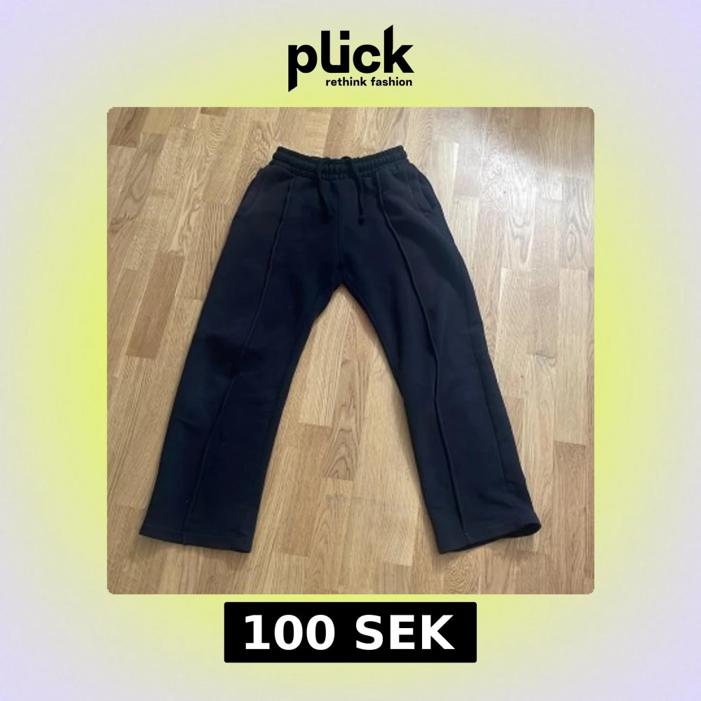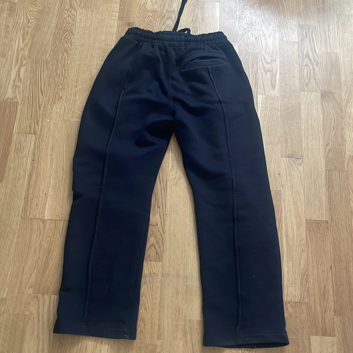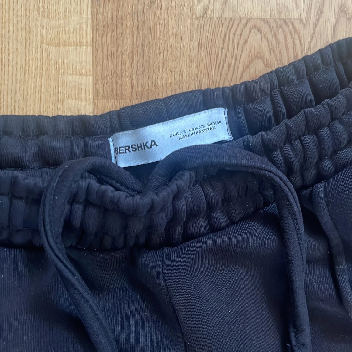 Sitter dig bra om du är 175-170cm lång. Svarta mjukisbyxor från Bershka i storlek XS. Byxorna har resår och snörning i midjan, raka ben och diskreta sömdetaljer längs framsidan. Mjukt material och fickor både fram och bak. Perfekta för chill dagar eller när du vill vara bekväm.