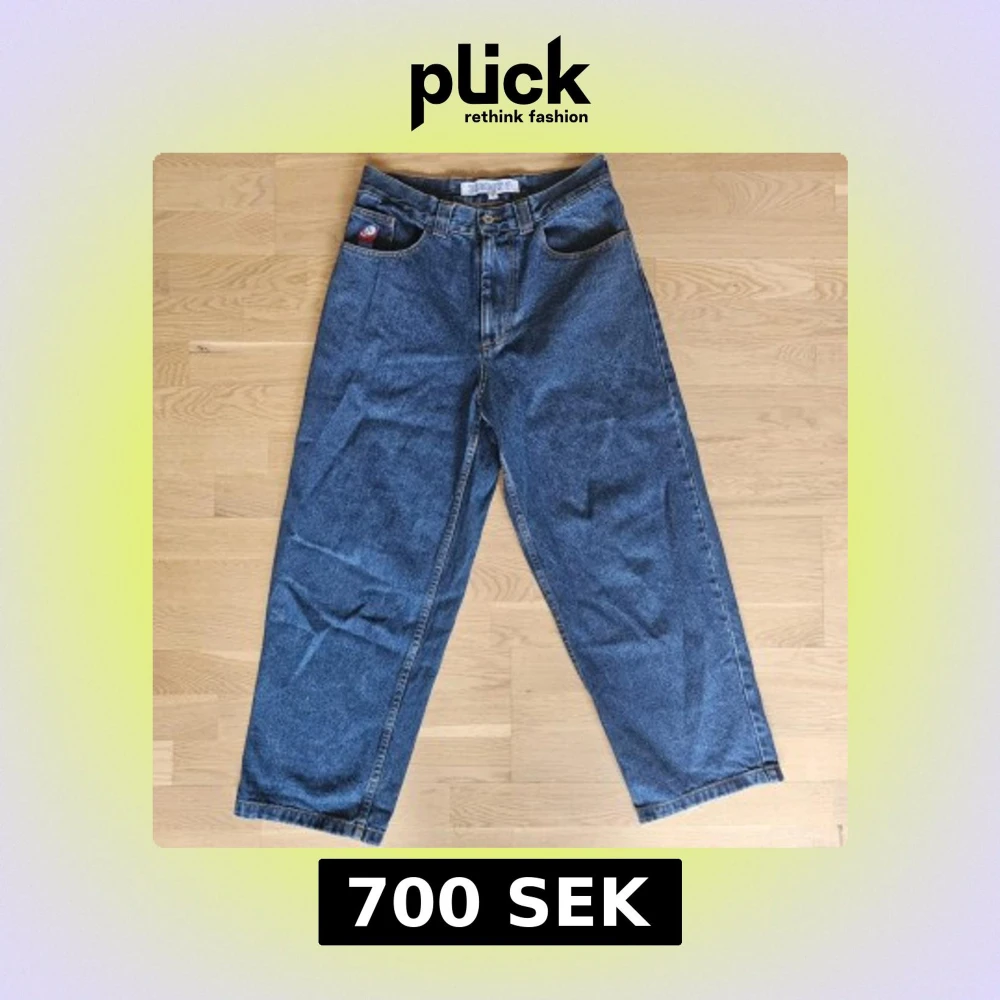 Säljer ett par blå jeansbyxor från BigBoy i storlek S. De är riktigt fräscha förutom lite heelbite (se bild). Säljer för att jag köpte de här och de var för korta för mig.
