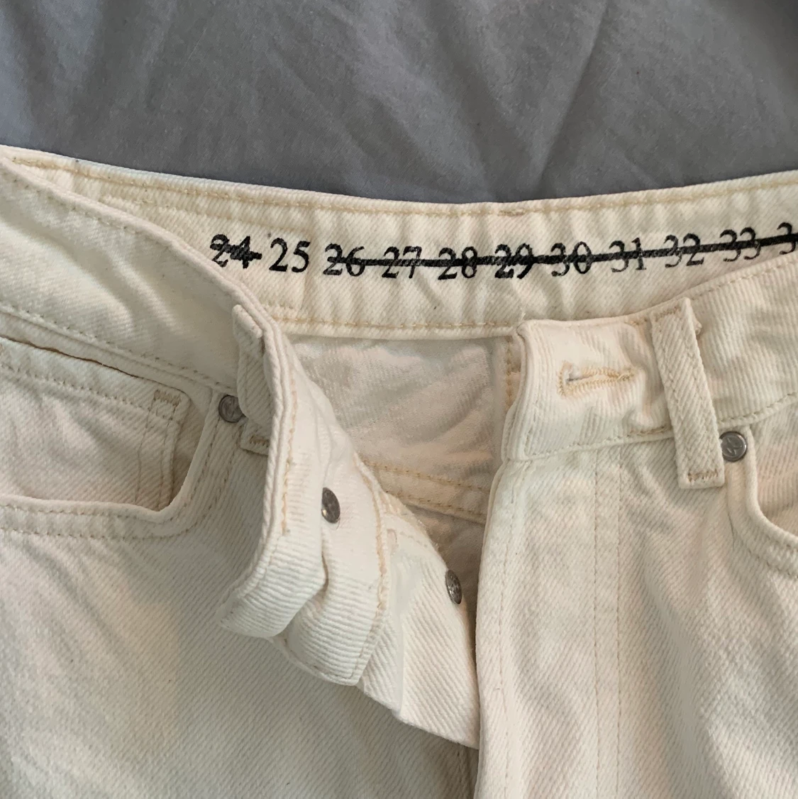 Cremevita raka jeans från bikbok. Såå fina men kommer tyvärr inte till användning längre. Använda fåtal gånger men väldigt fint skick💖💖 Nypris 600kr