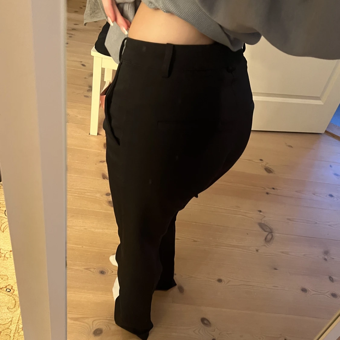 Bikboks kostymbyxor i storlek 34, jag är 160 och dom passar mig i längden.