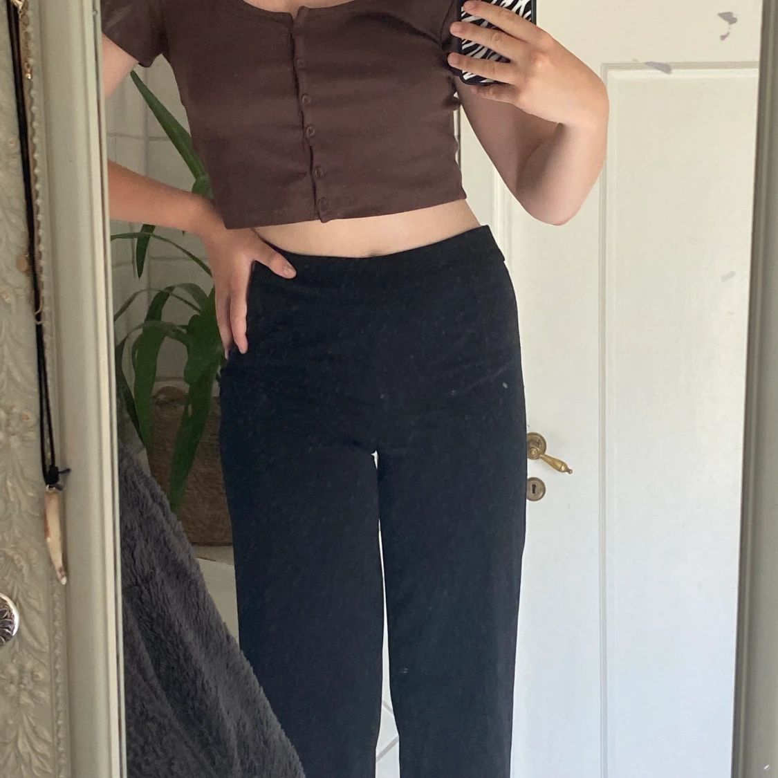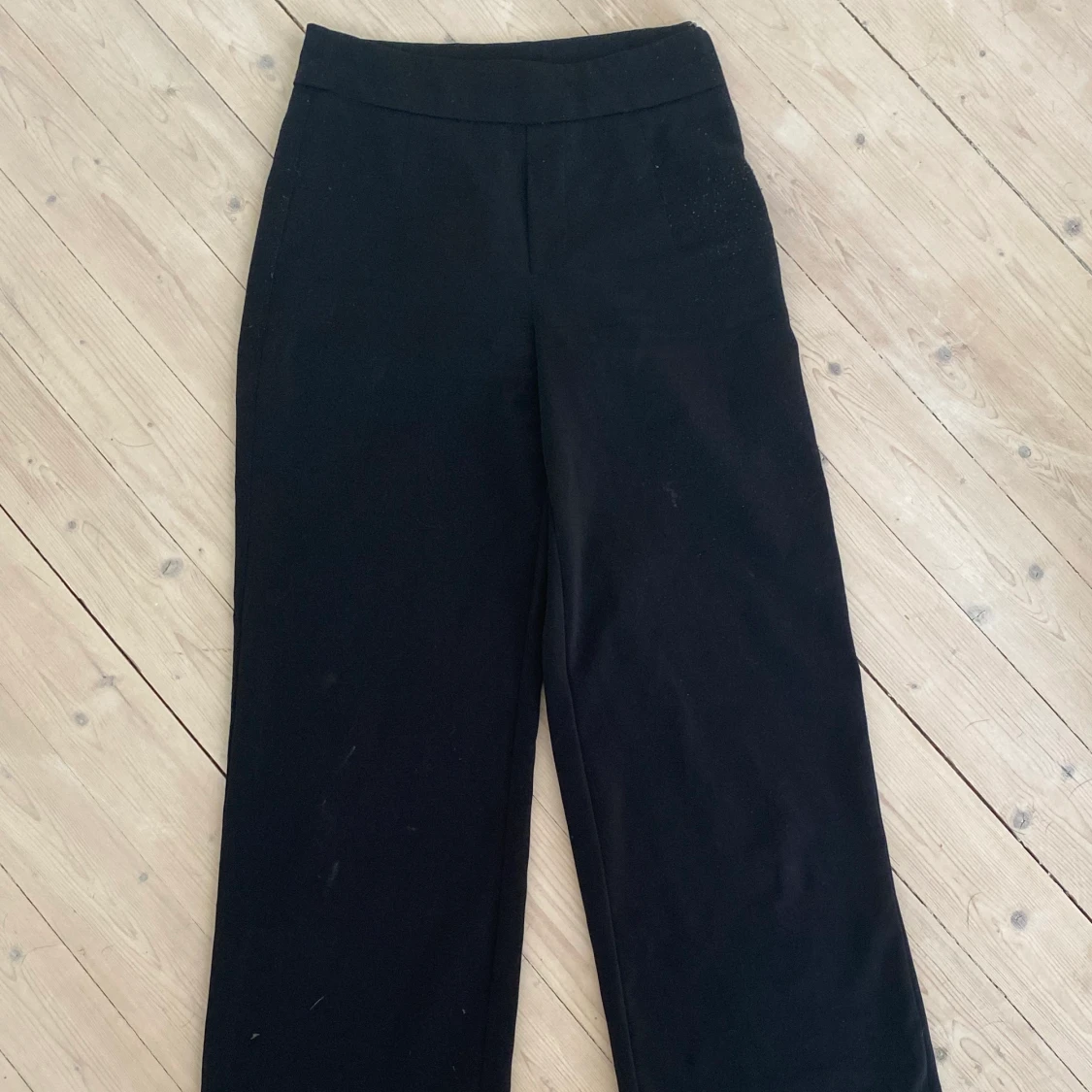 Svarta kostymbyxor med dragkedja på sidan. Säljer byxorna för att dem inte passar mig i storleken längre. Kostymbyxorna är i storlek 34. Kontakta vid köp eller för mer bilder💕