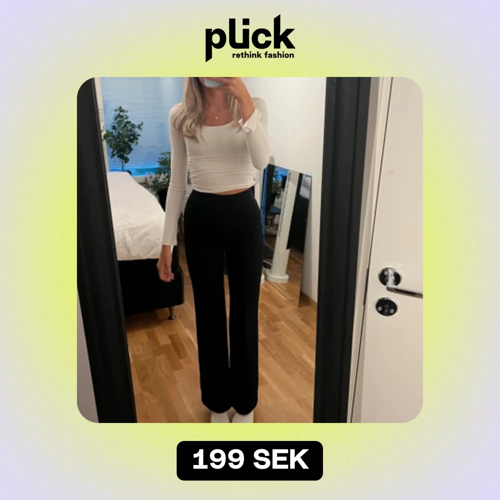 Jätte bekväma högmidjade kostymbyxor i tunnare material med dragkedja i sidan. För korta för mig som är 172 därav nästan aldrig använda. Bra skick❣️
