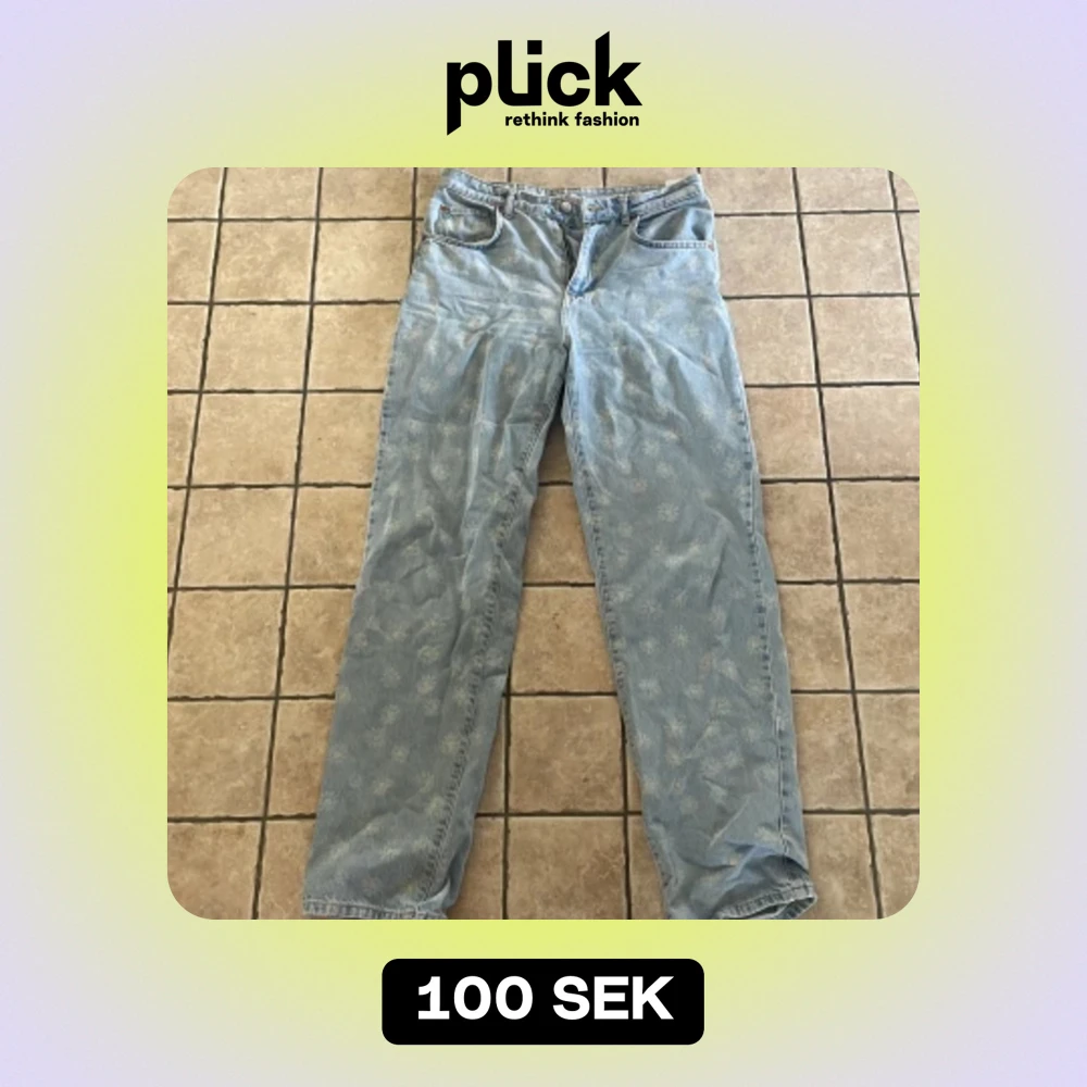 Blommiga jeans från bikbok. High waist straight. I använt skick.